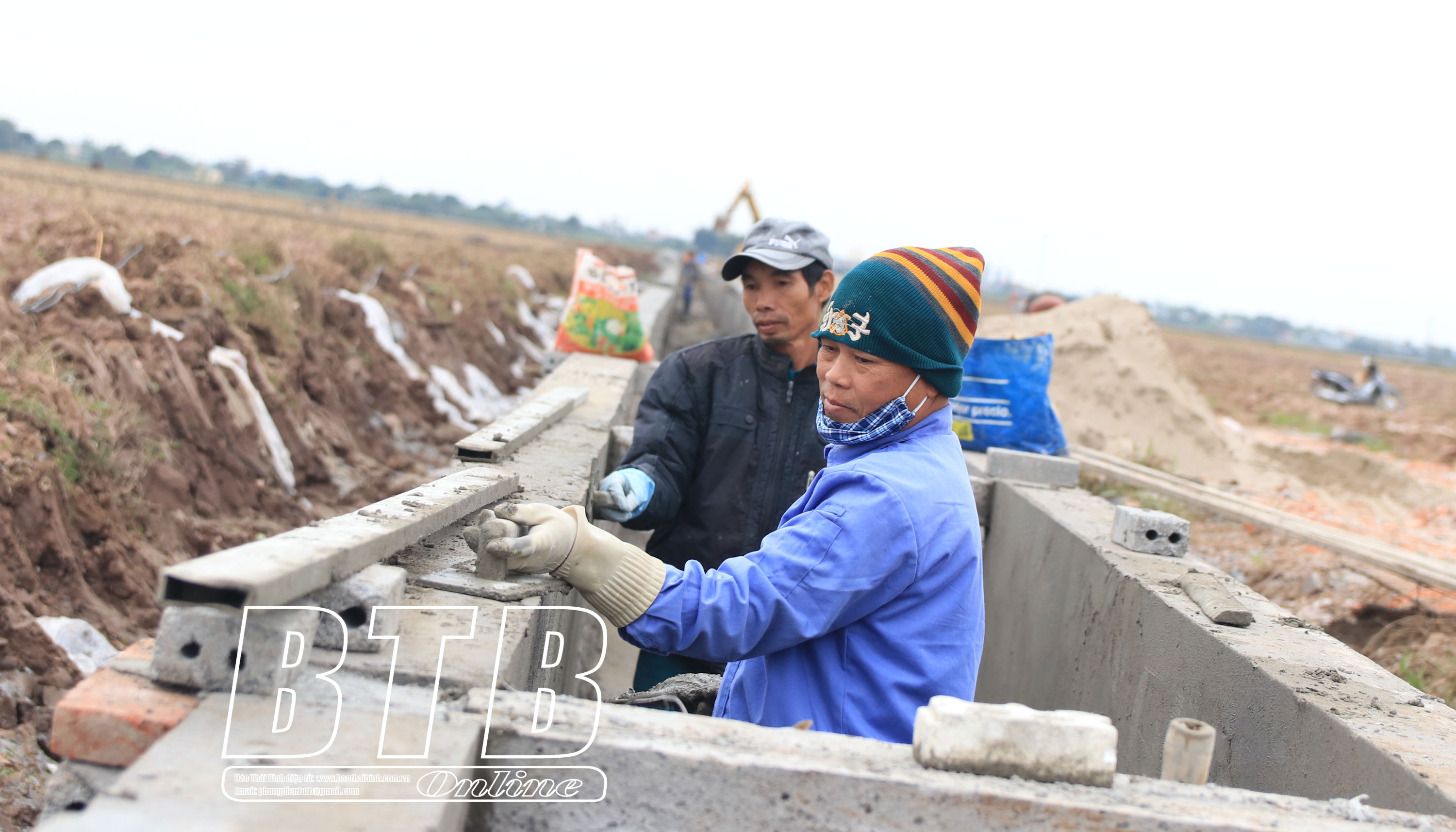 Thi công tuyến kênh xã Bắc Hải (Tiền Hải).