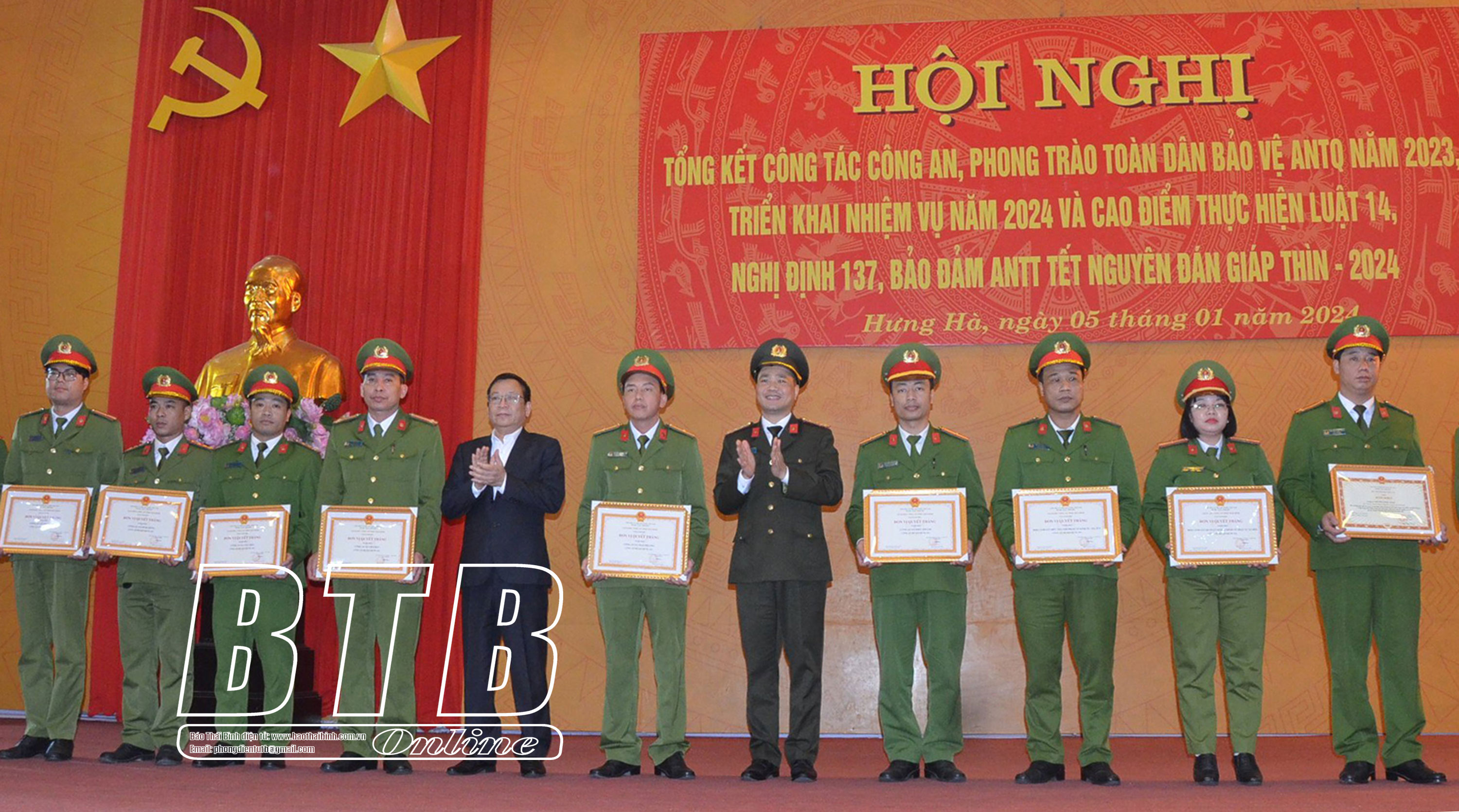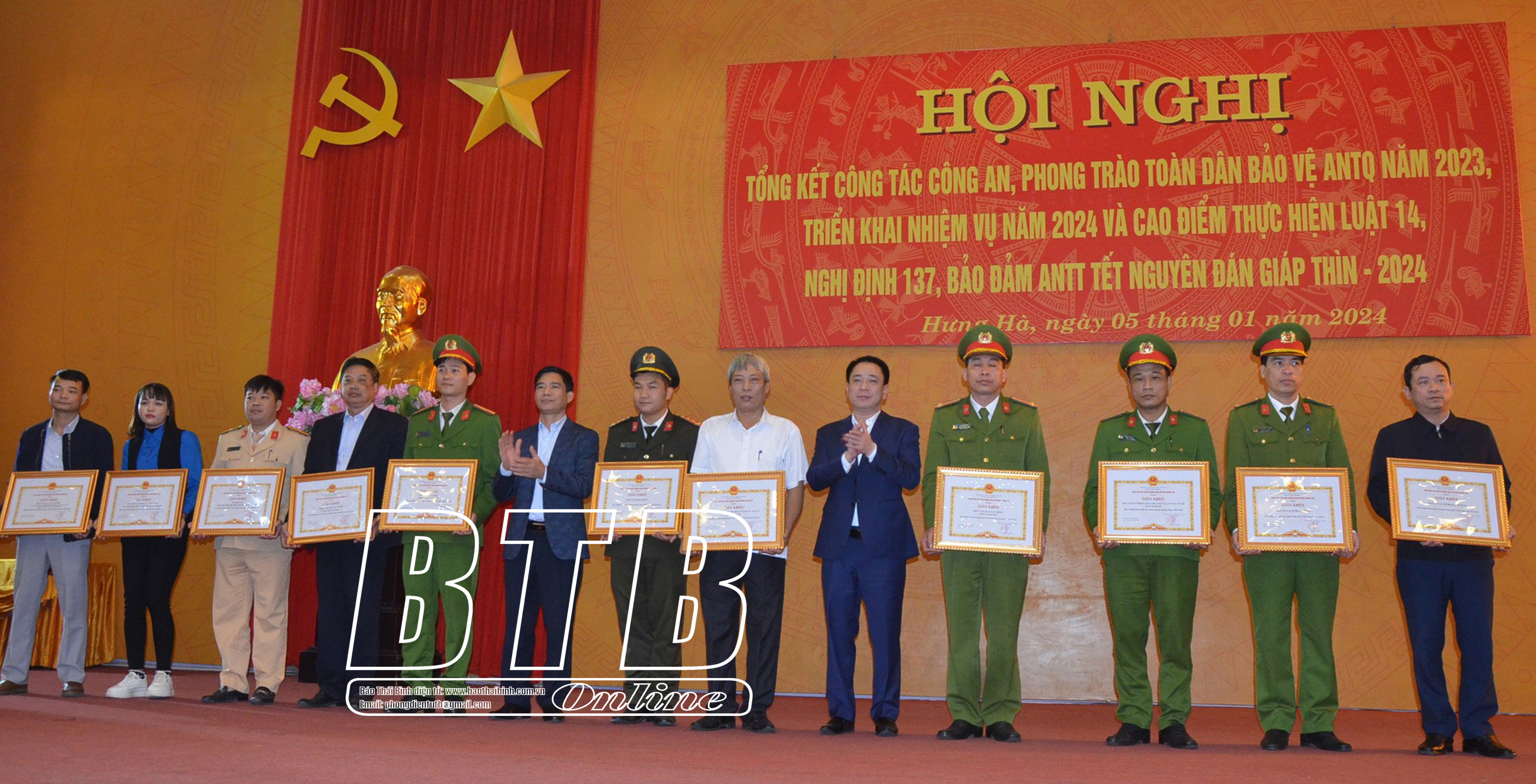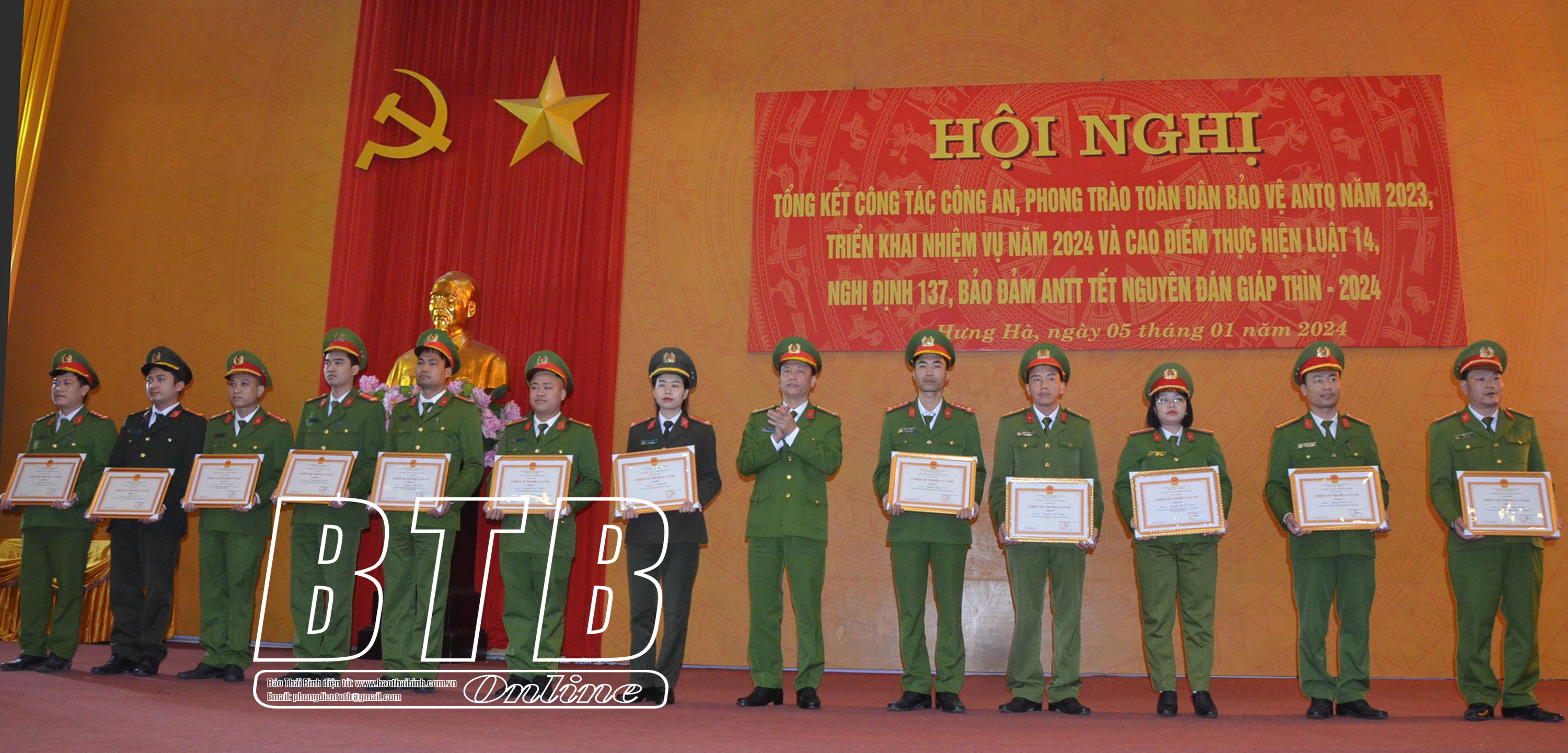 Trước đó, Công an huyện Hưng Hà đã tổ chức lễ ra quân bảo đảm ANTT tết Nguyên đán Giáp Thìn 2024, mở đợt cao điểm trấn áp các loại tội phạm từ ngày 11/1 đến ngày 24/2, qua đó bảo đảm ANTT, giữ bình yên cho nhân dân vui tết, đón xuân.