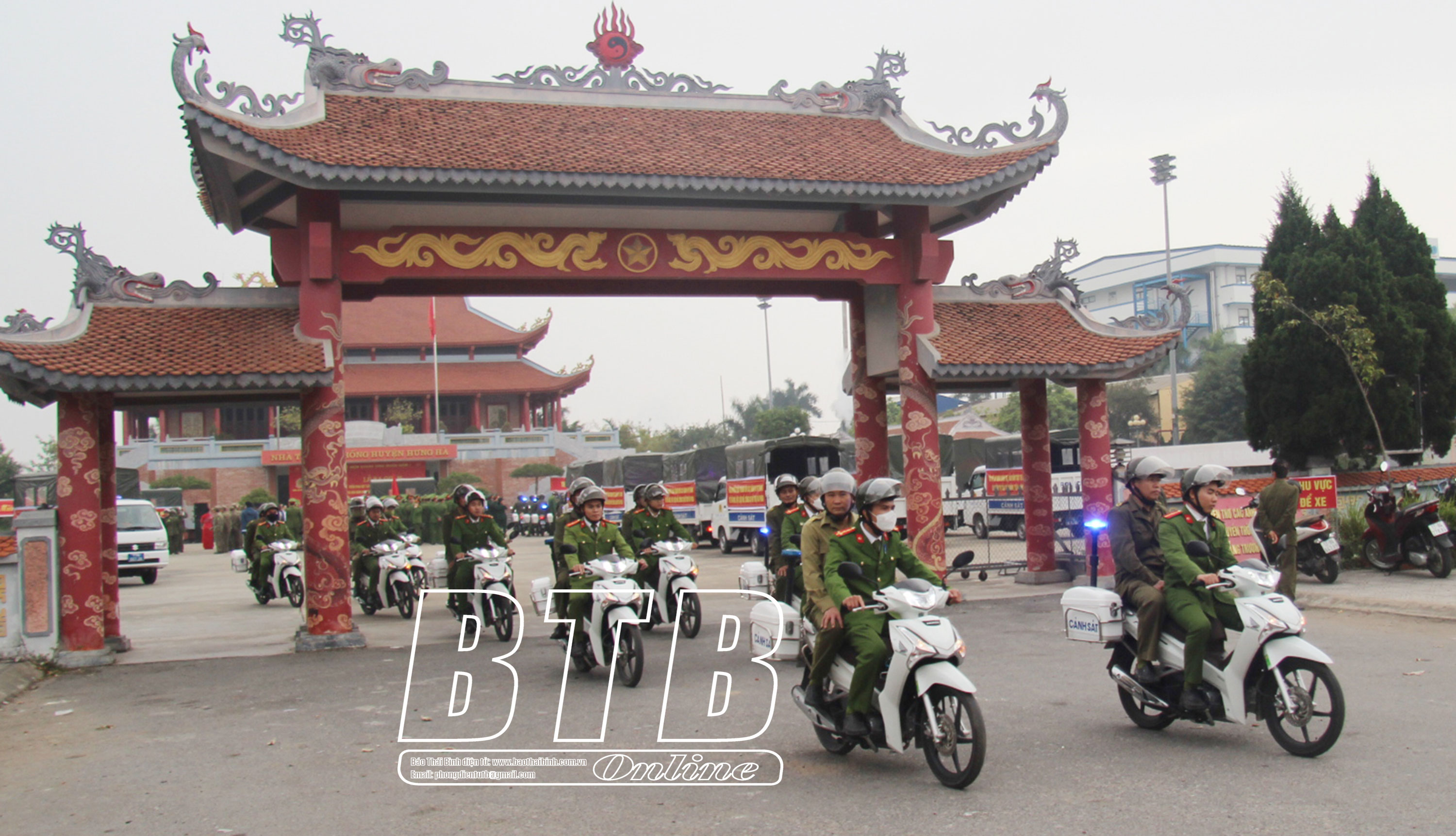 Lực lượng Công an huyện Hưng Hà ra quân bảo đảm an ninh trật tự dịp tết Nguyên đán Giáp Thìn 2024.