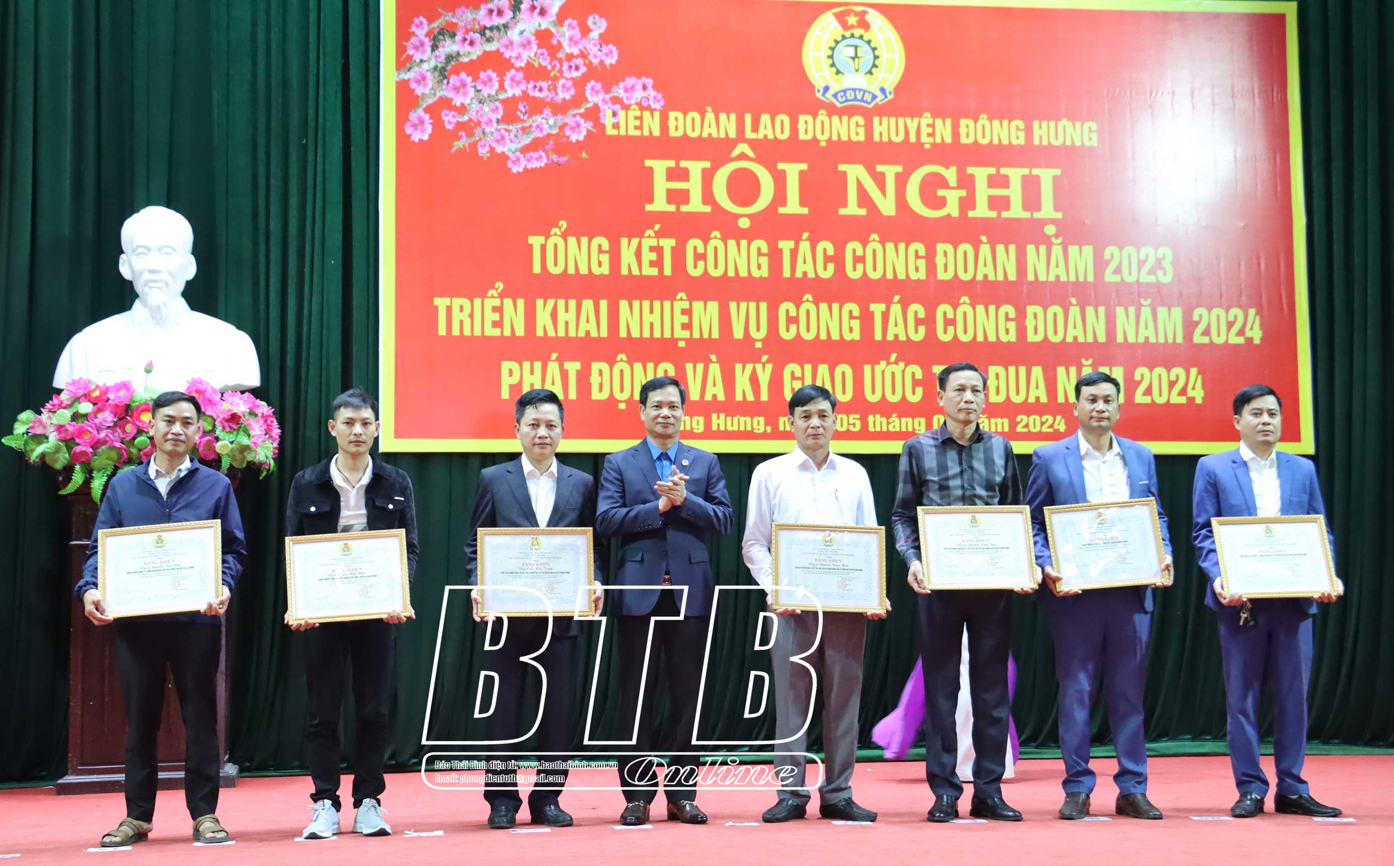 Liên đoàn Lao động huyện Đông Hưng: Khen thưởng 103 tập thể, cá nhân có thành tích xuất sắc năm 2023