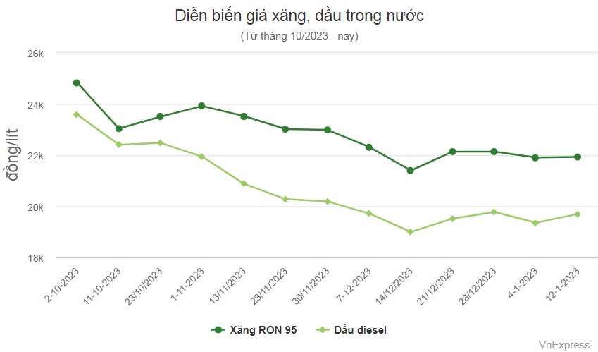 | Xăng RON 95-III | 21.930 | + 20 |