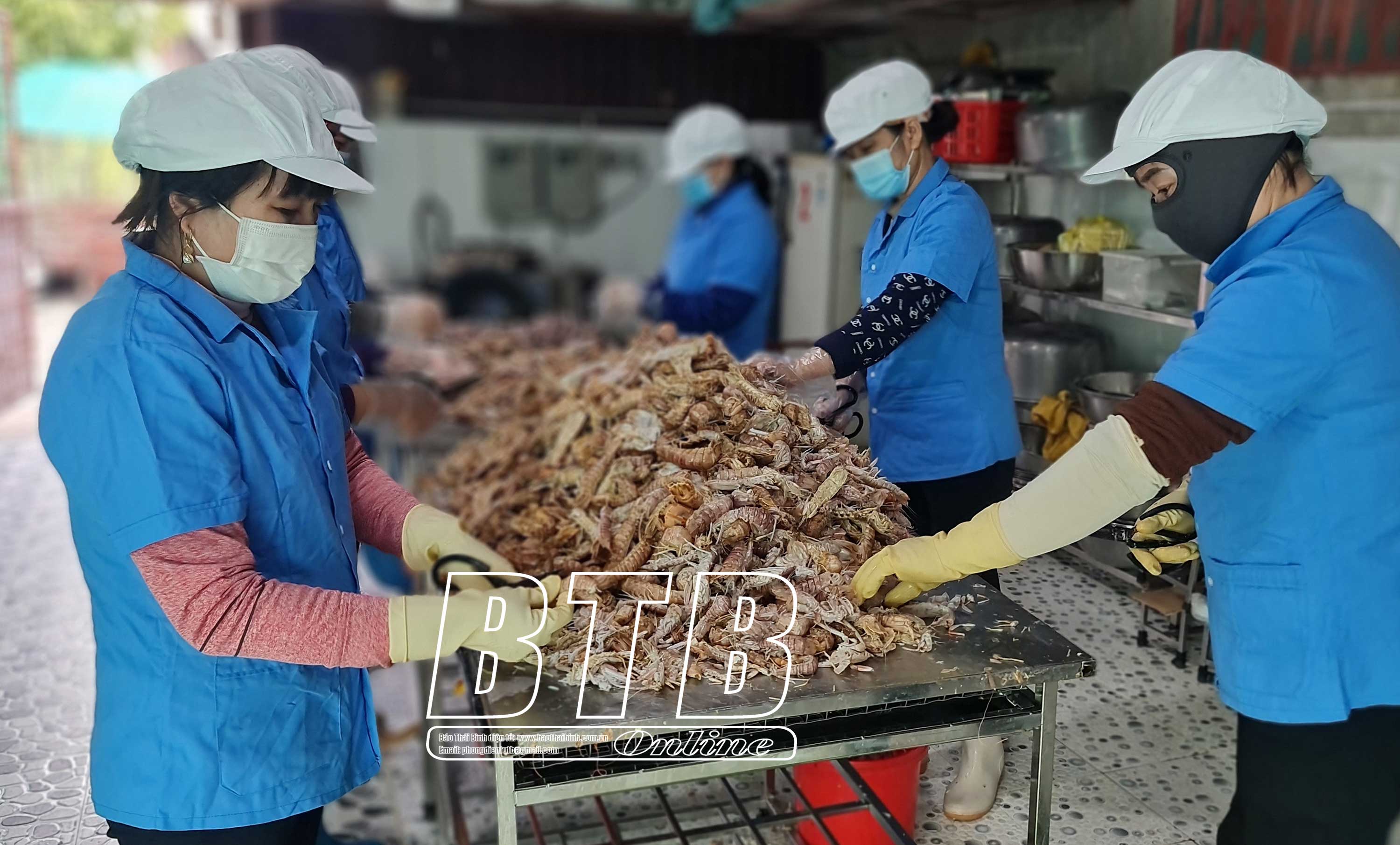 Sơ chế hải sản tại Công ty TNHH Hải sản Ngọc Minh (xã Nam Thịnh, huyện Tiền Hải).