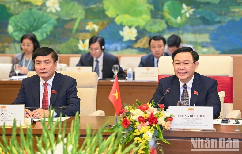 Để tiếp tục phát triển quan hệ hai nước, Chủ tịch Quốc hội Vương Đình Huệ đề nghị hai bên trao đổi nội hàm, lộ trình nâng quan hệ song phương lên tầm cao mới.