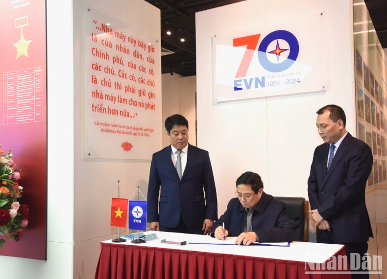 Thủ tướng Phạm Minh Chính thăm phòng truyền thống của Tập đoàn EVN. (Ảnh: Trần Hải).