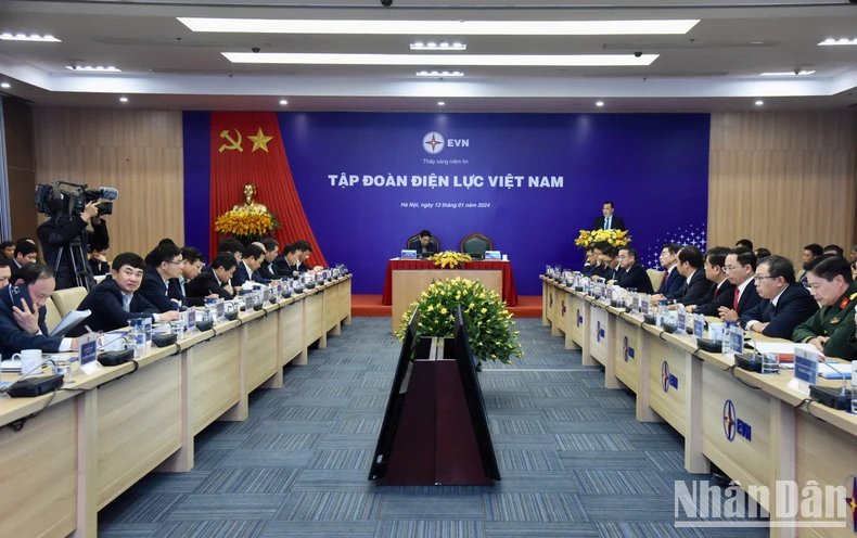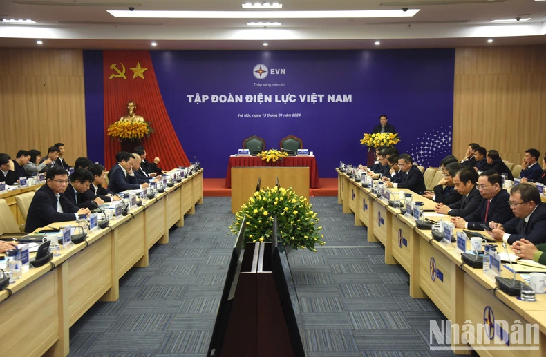 Về nhiệm vụ năm 2024, Thủ tướng yêu cầu EVN dứt khoát không để thiếu điện cho sản xuất, kinh doanh và tiêu dùng trong bất cứ hoàn cảnh nào; vận hành hoạt động và giá cả theo quy luật thị trường, quy luật cung cầu, nhưng phải có chính sách cho đối tượng thuộc diện chính sách an sinh xã hội. Tái cấu trúc tập đoàn theo quy luật thị trường và cân đối được tài chính, đẩy mạnh sản xuất, kinh doanh, tháo gỡ khó khăn, vướng mắc, khắc phục được những hạn chế, yếu kém; có tính dự báo cao hơn; ứng dụng khoa học công nghệ; đồng thời đẩy mạnh công cuộc phòng, chống tham nhũng, tiêu cực; khuyến khích và bảo vệ cán bộ dám nghĩ, dám làm vì lợi ích chung.
