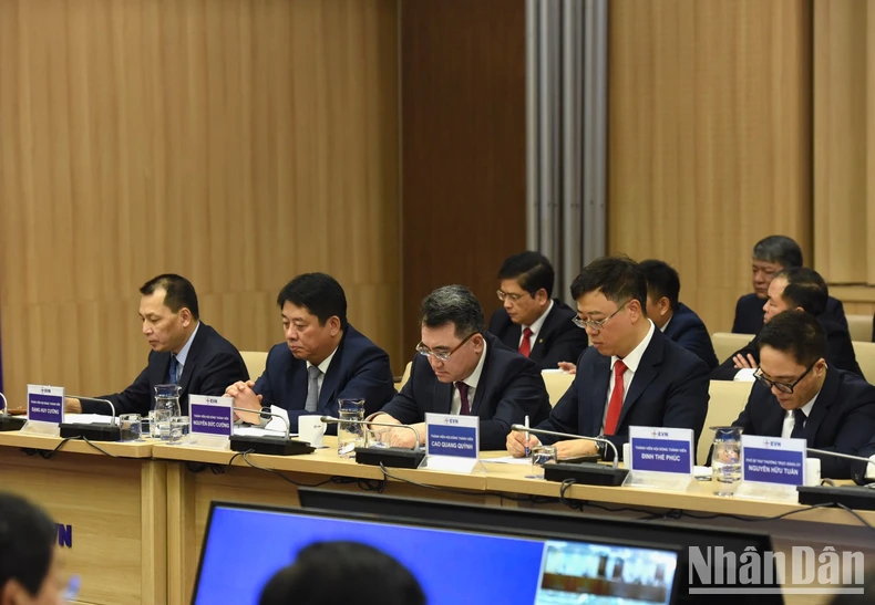 Tại buổi làm việc, đại diện lãnh đạo các bộ, ngành, tập đoàn, tổng công ty phát biểu đóng góp ý kiến để tăng cường phối hợp với EVN, kiến nghị Chính phủ, Thủ tướng Chính phủ tháo gỡ một số khó khăn, vướng mắc nhằm tăng cường công tác bảo đảm cung ứng điện an toàn, ổn định và liên tục cho nền kinh tế.