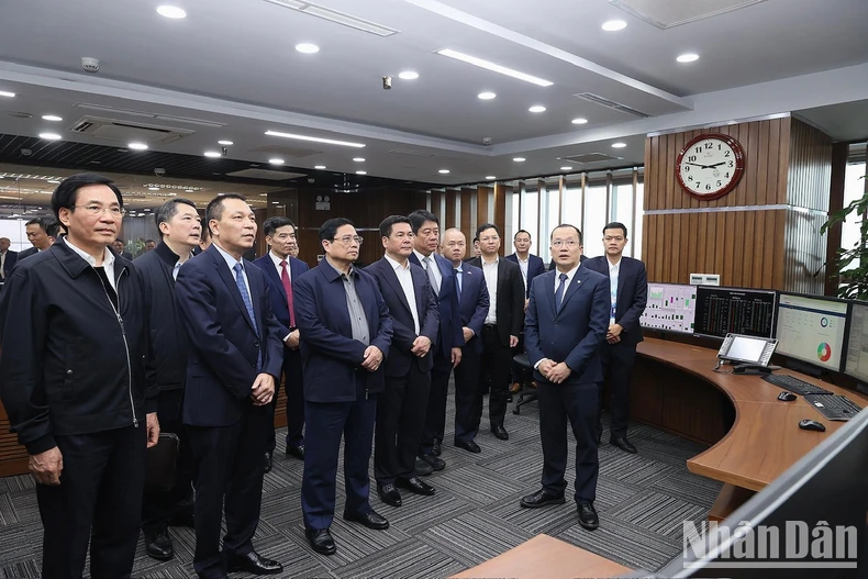 Thủ tướng Phạm Minh Chính thăm Trung tâm điều độ hệ thống điện quốc gia. (Ảnh: Trần Hải).