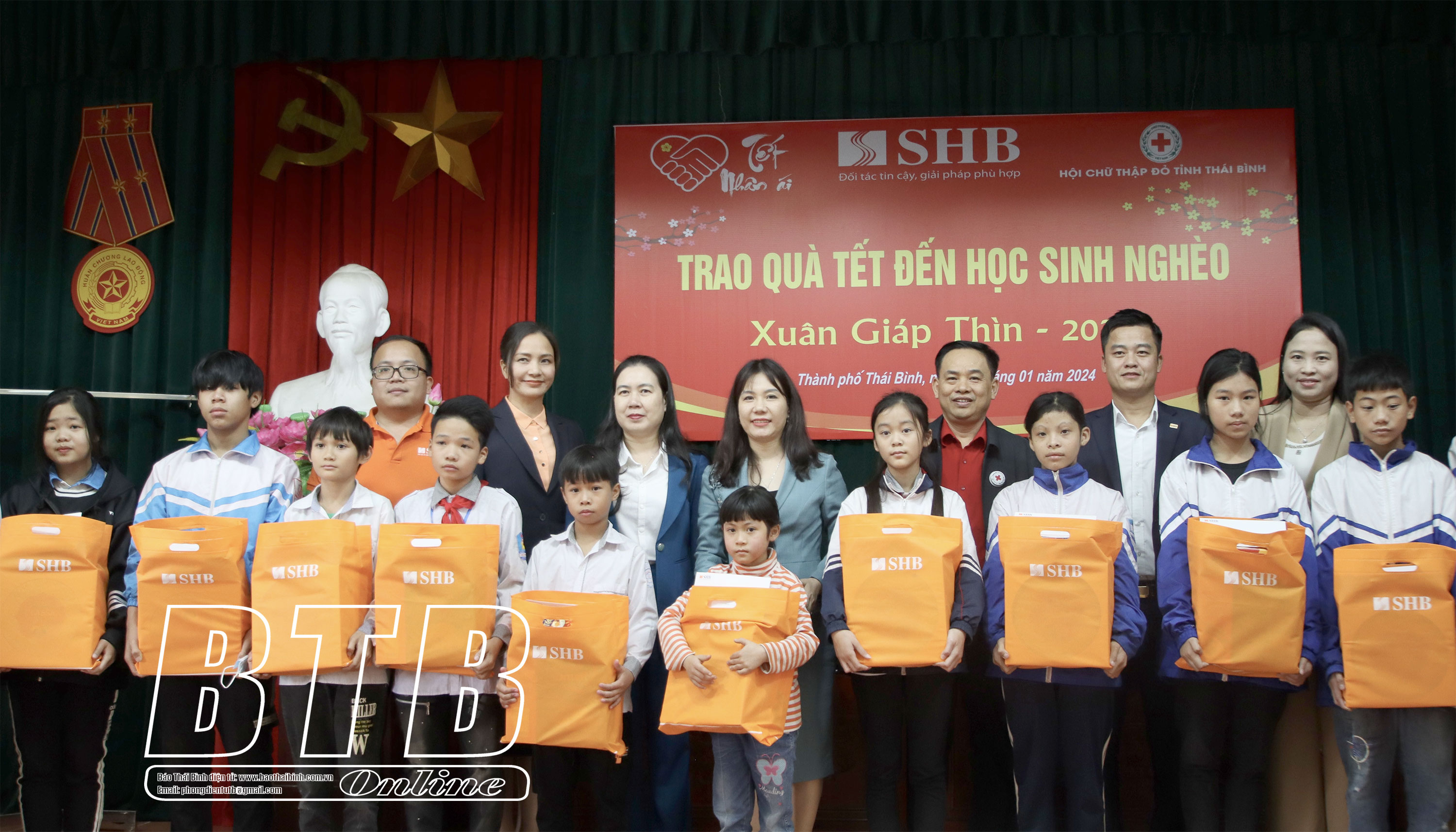 Chiều ngày 15/1, Hội Chữ thập đỏ thành phố Thái Bình phối hợp với Ngân hàng Thương mại Cổ phần Sài Gòn - Hà Nội (SHB) tổ chức trao quà tết cho học sinh nghèo, có hoàn cảnh đặc biệt khó khăn trên địa bàn thành phố. Đồng chí Trần Thị Bích Hằng, Tỉnh ủy viên, Phó Chủ tịch UBND tỉnh tới dự.