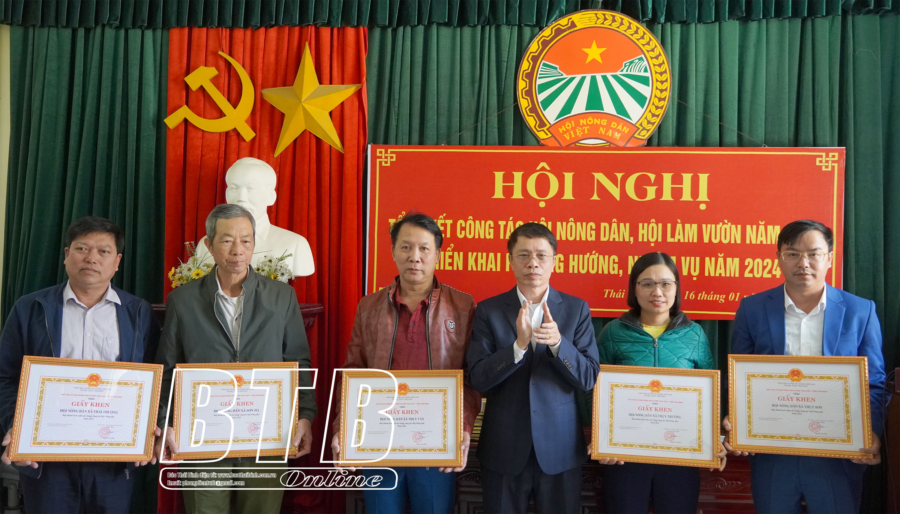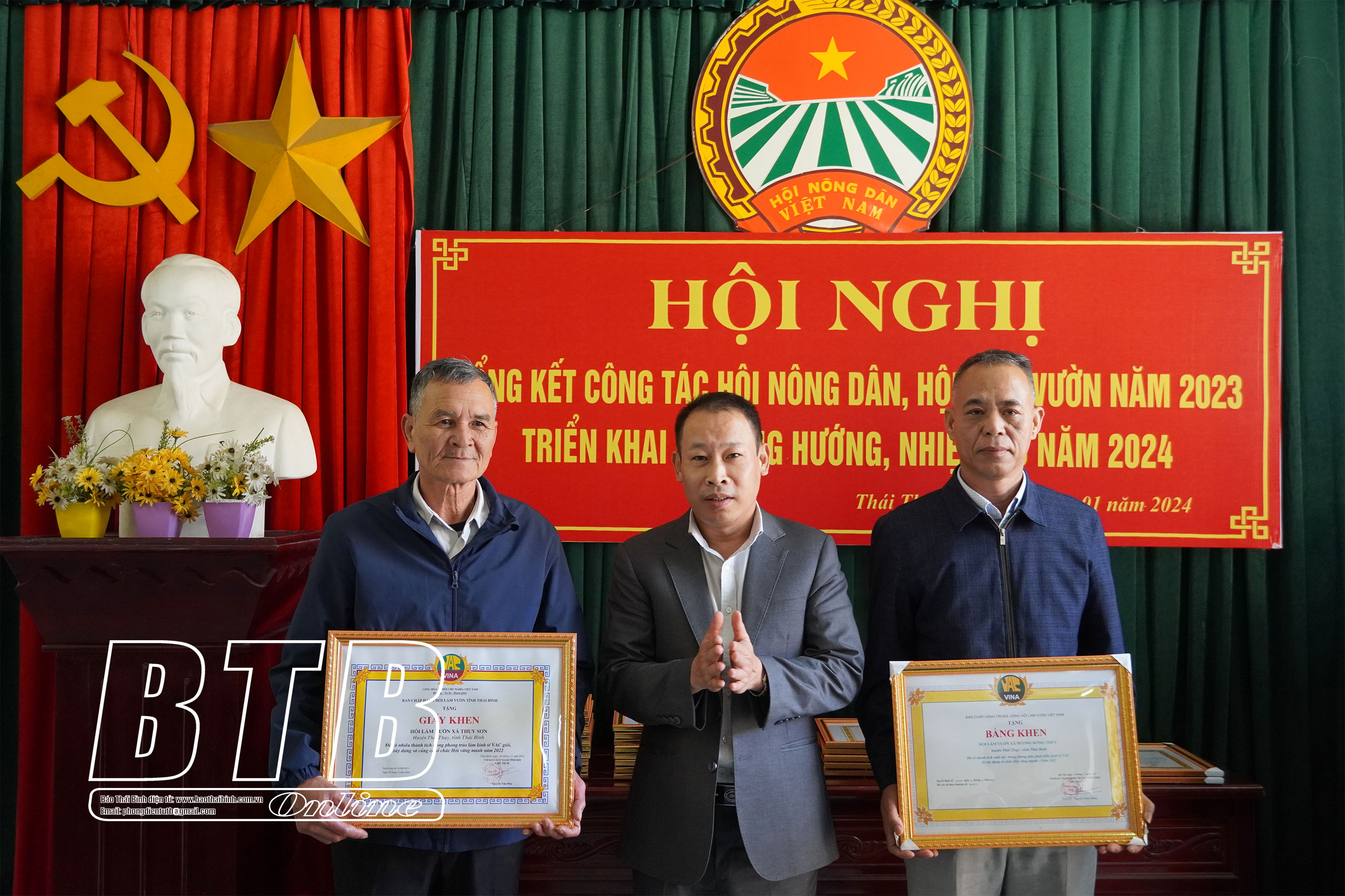 Lãnh đạo Hội Làm vườn tỉnh tặng giấy khen cho tập thể có thành tích xuất sắc.Lãnh đạo huyện Thái Thụy trao giấy khen cho các tập thể, cá nhân có thành tích xuất sắc trong công tác hội nông dân năm 2023.