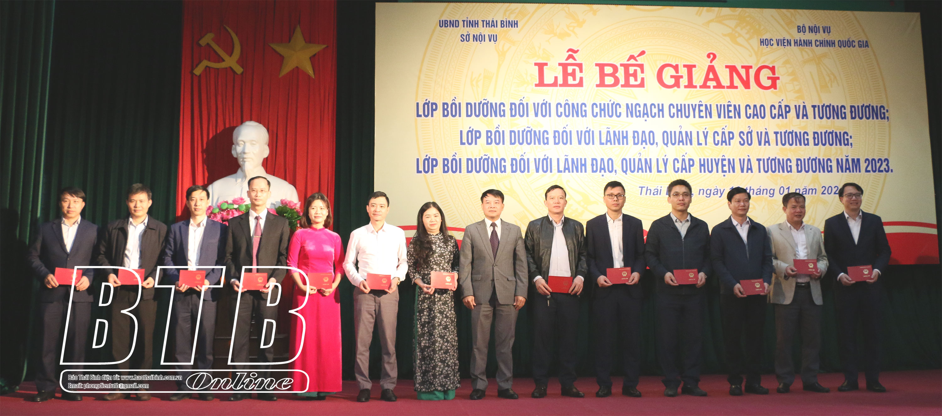 Chiều ngày 16/1, Sở Nội vụ phối hợp với Học viện Hành chính Quốc gia tổ chức bế giảng lớp bồi dưỡng đối với công chức ngạch chuyên viên cao cấp và tương đương; lớp bồi dưỡng đối với lãnh đạo, quản lý cấp sở và tương đương; lớp bồi dưỡng đối với lãnh đạo, quản lý cấp huyện và tương đương năm 2023.