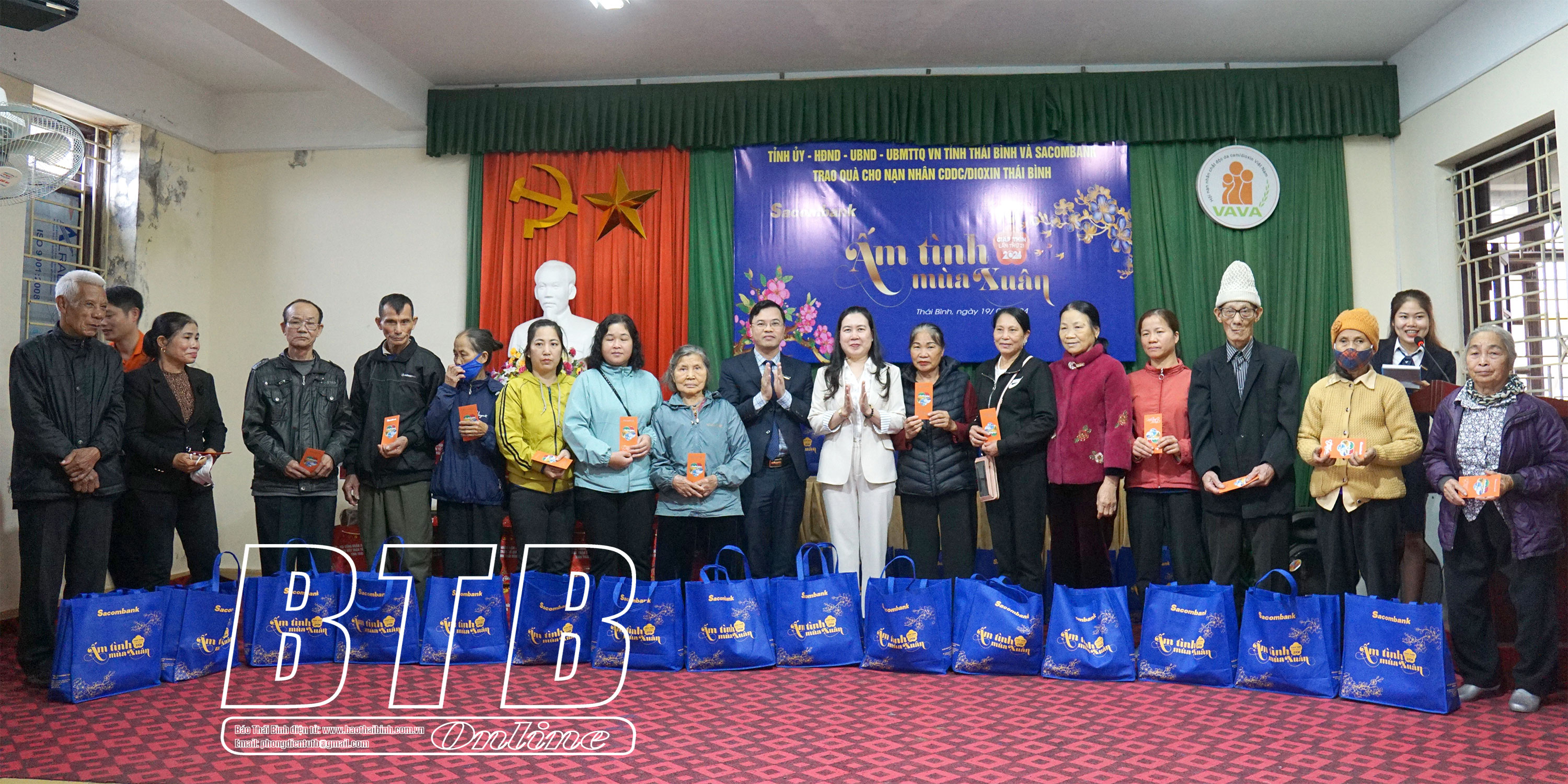 Trong dịp này, tỉnh sẽ trao 2.500 suất quà cho các nạn nhân chất độc da cam gián tiếp tại 8 huyện, thành phố và các đơn vị trong tỉnh; Sacombank chi nhánh Thái Bình trao 120 suất quà với tổng trị giá 60 triệu đồng cho người già neo đơn, trẻ mồ côi, khuyết tật, nạn nhân chất độc da cam có hoàn cảnh khó khăn trên địa bàn tỉnh.