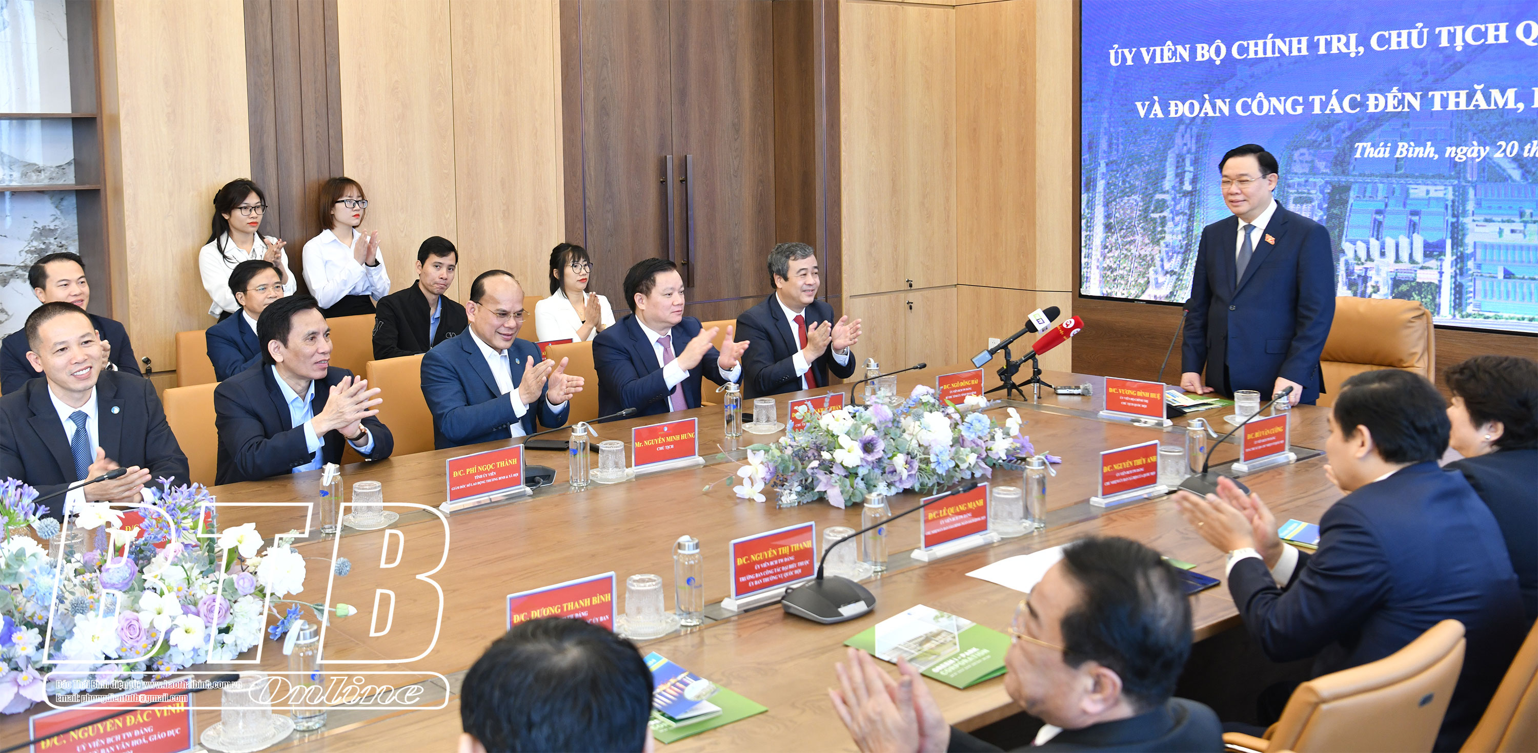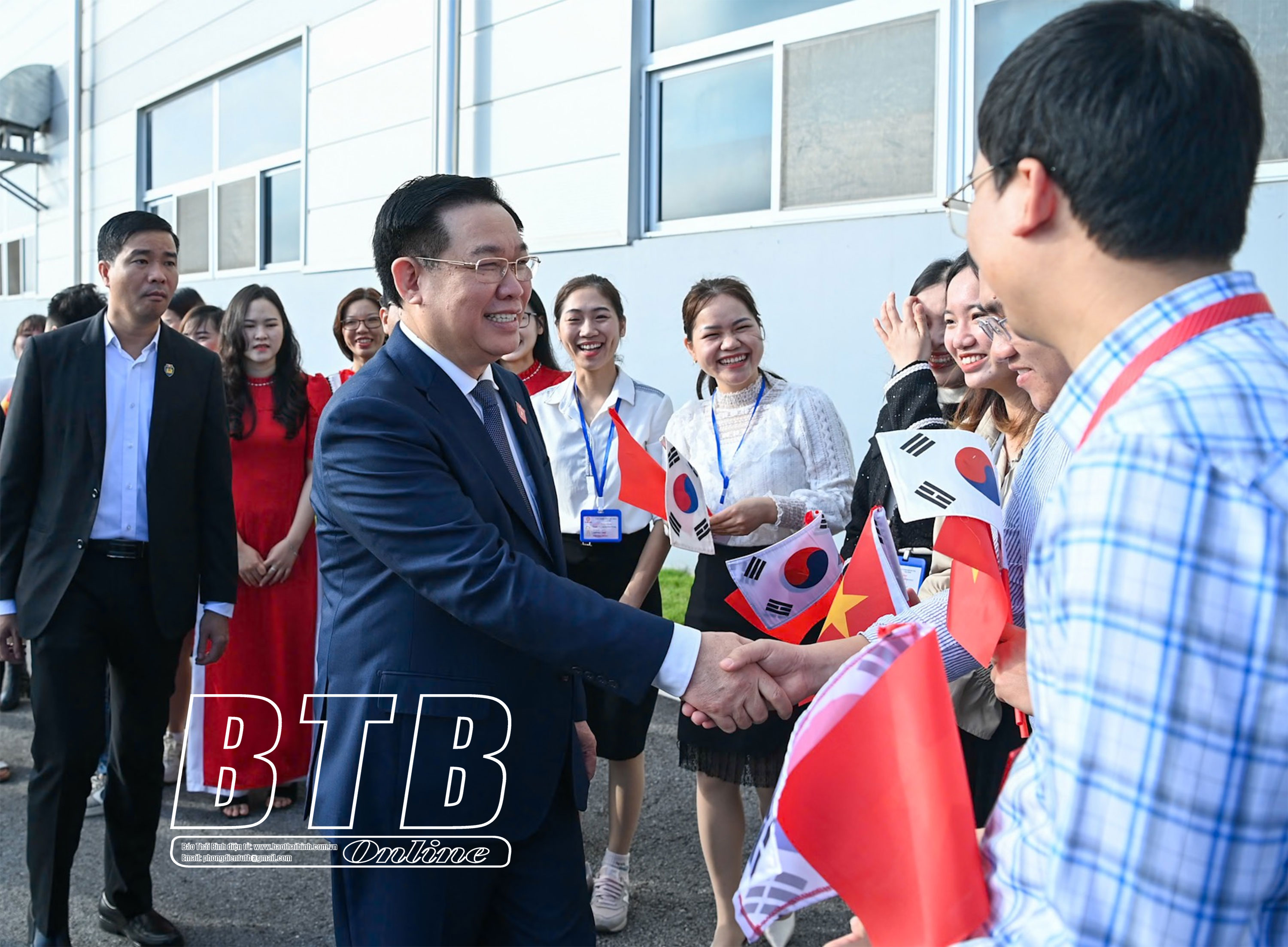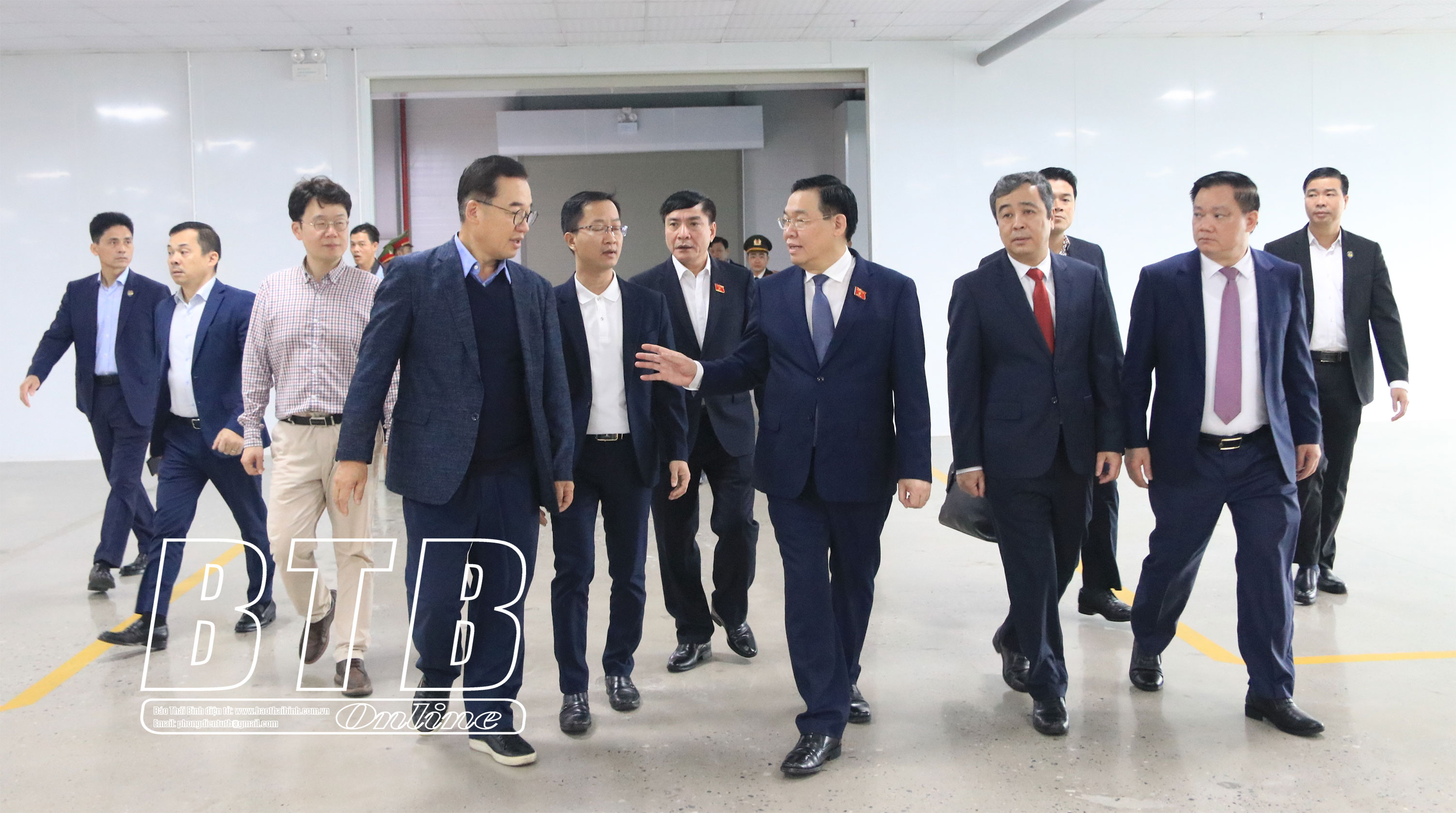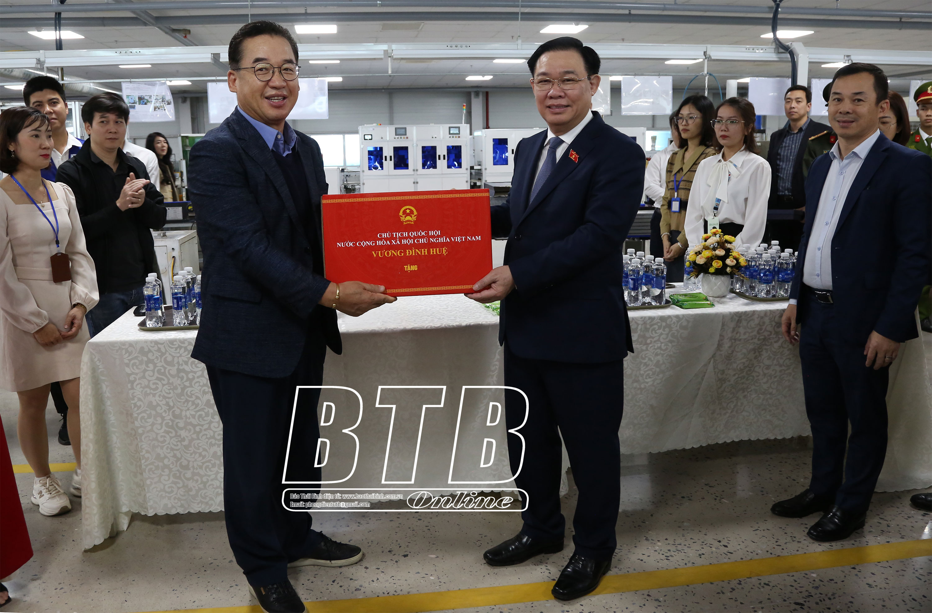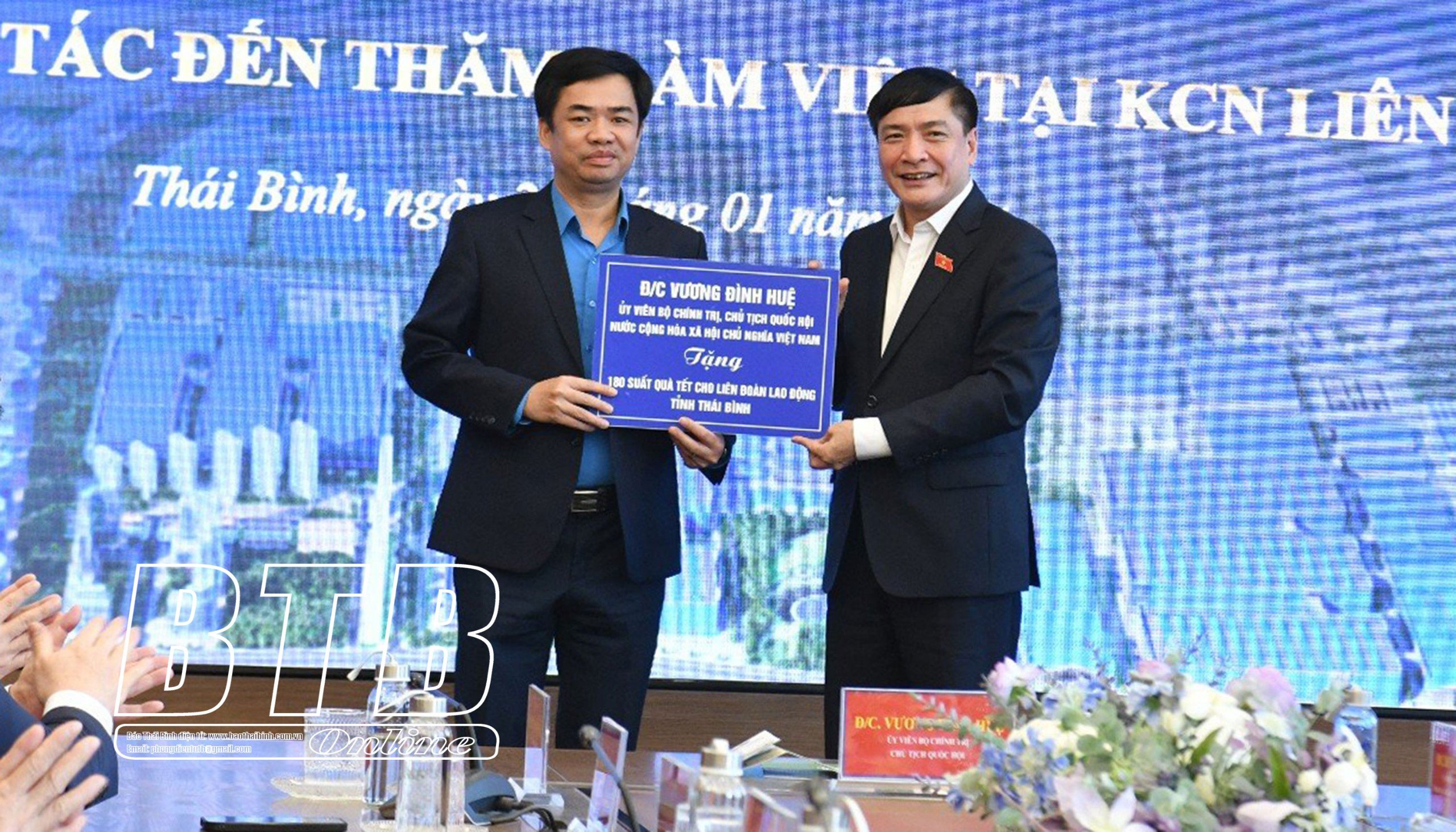 Trong chuyến thăm và làm việc tại Thái Bình, sáng ngày 20/1, đồng chí Vương Đình Huệ, Ủy viên Bộ Chính trị, Chủ tịch Quốc hội cùng đoàn công tác của Ủy ban Thường vụ Quốc hội tới thăm, làm việc tại khu công nghiệp Liên Hà Thái (Thái Thụy).