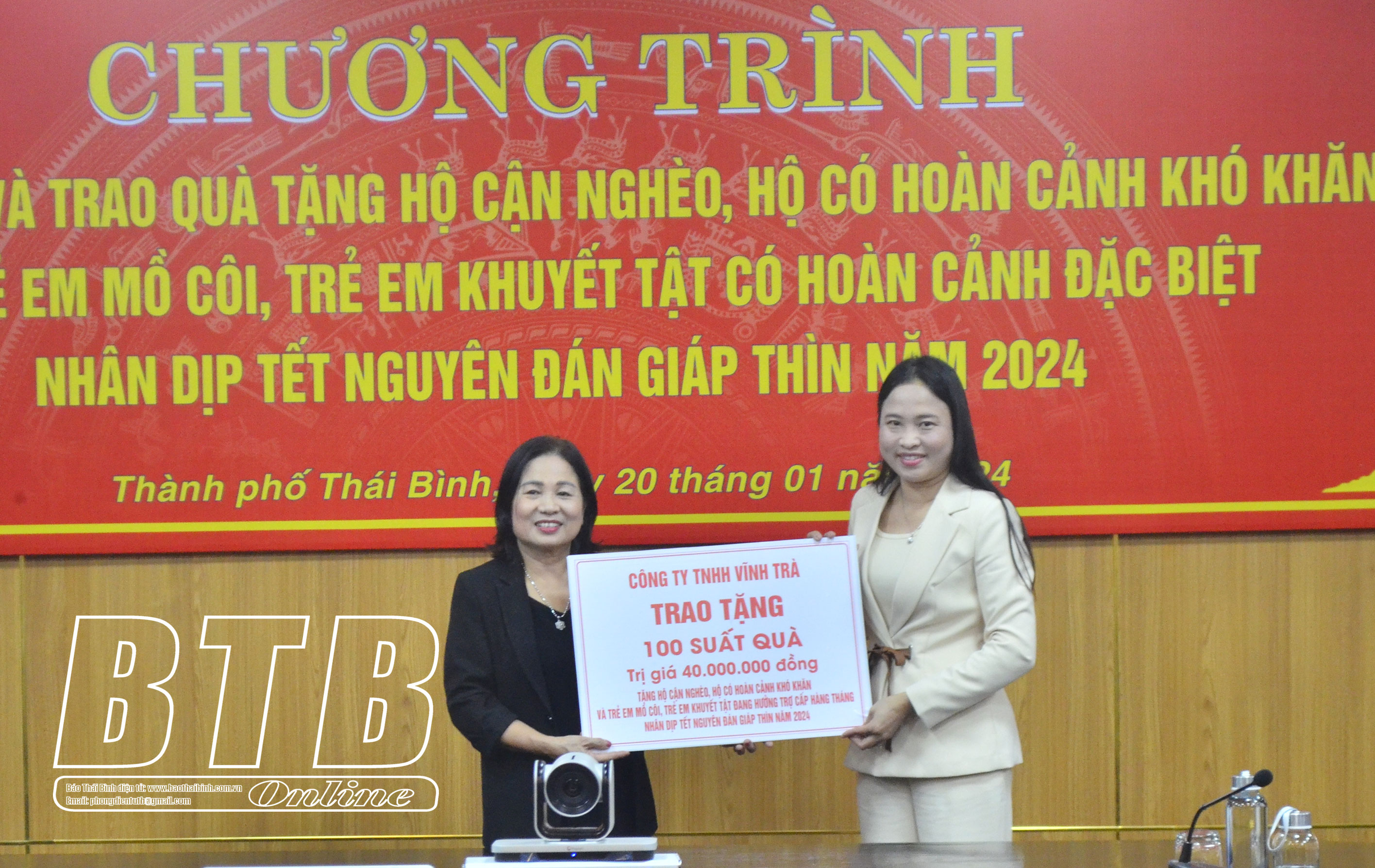 Lãnh đạo UBND thành phố tiếp nhận 100 suất quà từ Công ty TNHH Vĩnh Trà.