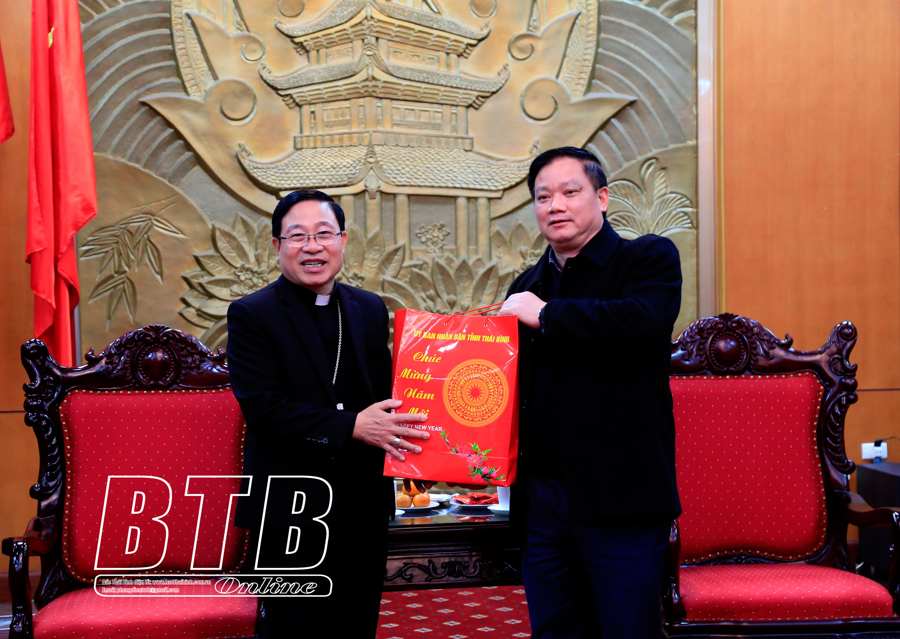 Nhân dịp chuẩn bị bước sang năm mới Giáp Thìn 2024, đồng chí Phó Bí thư Tỉnh ủy, Chủ tịch UBND tỉnh chúc Tòa Giám mục Giáo phận Thái Bình và các linh mục, chức sắc, chức việc và đồng bào Công giáo trong tỉnh đón tết cổ truyền của dân tộc vui vẻ, đầm ấm.