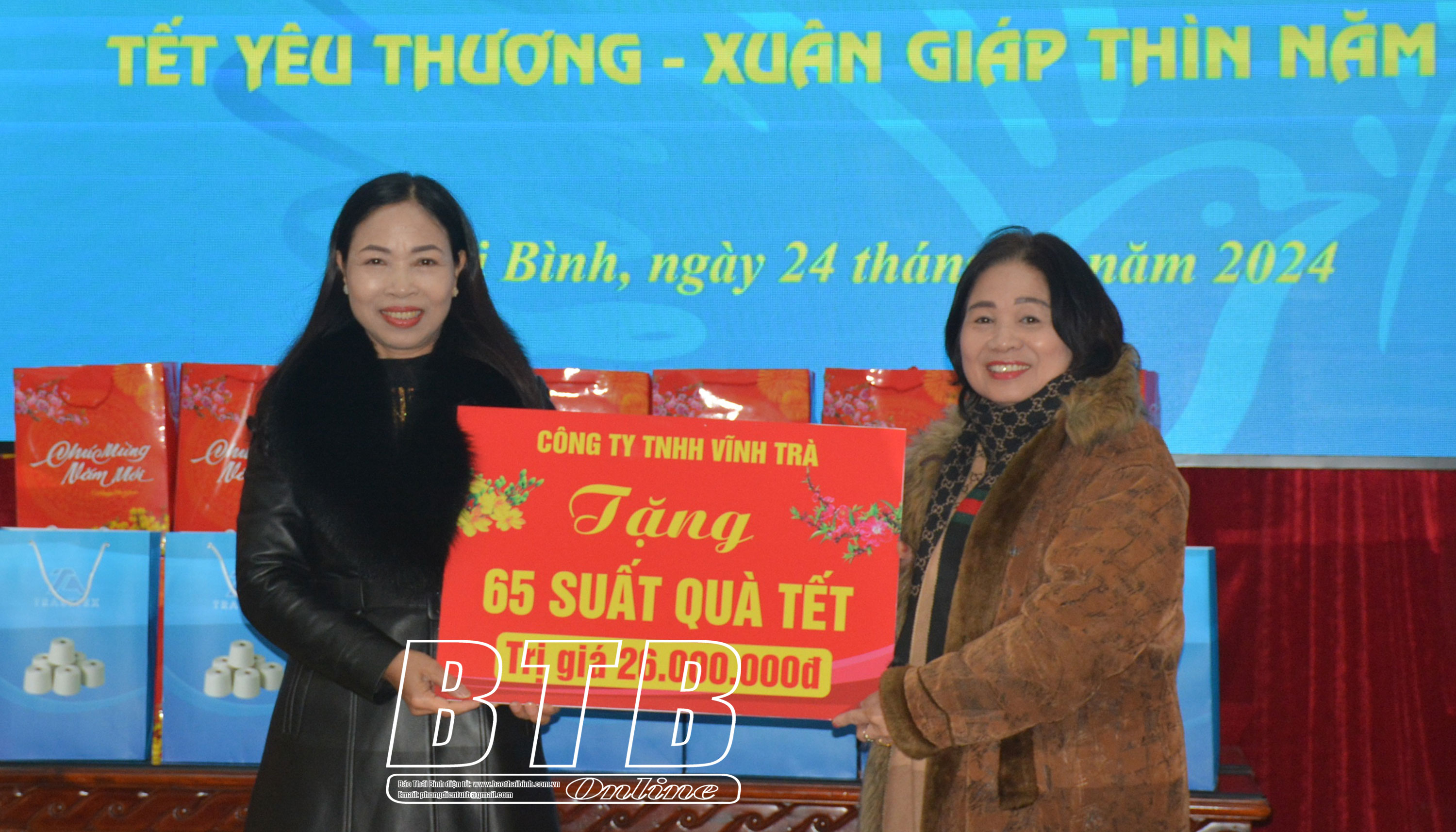 Tại chương trình, Hội LHPN tỉnh tiếp nhận 445 suất quà từ quỹ Trái tim nhân ái, các doanh nghiệp trong tỉnh. Sau khi tiếp nhận, Hội LHPN tỉnh phân bổ tới các huyện, thành phố để trao tới phụ nữ và trẻ em nghèo. Cùng với số quà trên, Hội LHPN tỉnh đã vận động các nguồn lực để chăm lo tết cho các gia đình chính sách, hộ nghèo, hộ khó khăn nhân dịp xuân Giáp Thìn năm 2024, đến nay được hơn 700 suất quà với tổng giá trị gần 400 triệu đồng.