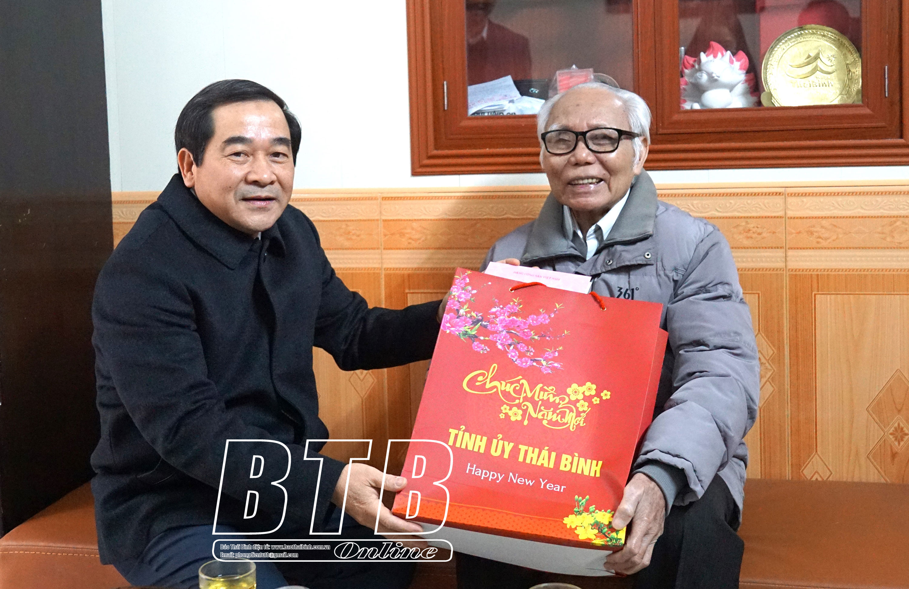 Đồng chí Nguyễn Tiến Thành, Phó Bí thư thường trực Tỉnh ủy, Chủ tịch HĐND tỉnh chúc tết nhà nghiên cứu văn hóa Nguyễn Thanh.