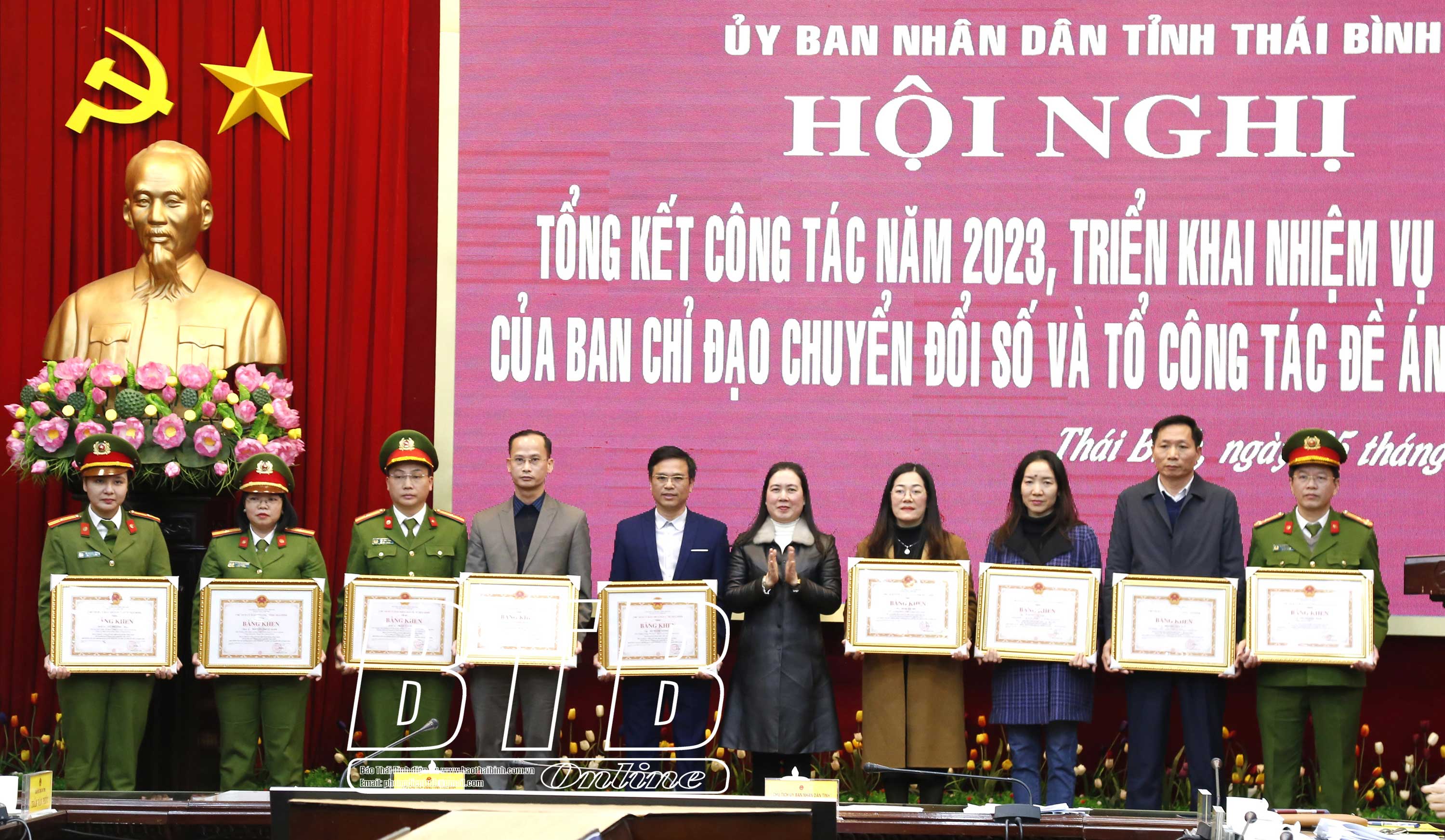 Đồng chí Trần Thị Bích Hằng, Tỉnh ủy viên, Phó Chủ tịch UBND tỉnh, Phó Trưởng ban thường trực Ban Chỉ đạo về chuyển đổi số, Tổ phó Tổ công tác Đề án 06 của tỉnh bằng khen của UBND tỉnh cho các cá nhân.