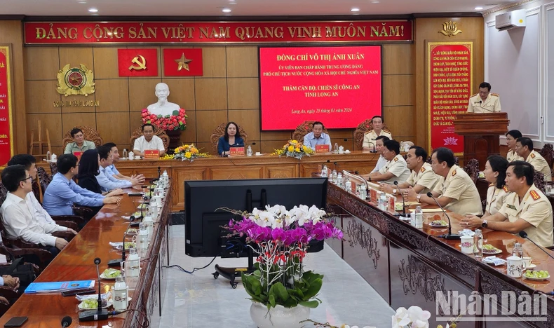 Phó Chủ tịch nước Võ Thị Ánh Xuân nhấn mạnh: Long An có đường biên giới dài hơn 134km, giáp với Campuchia, là cửa ngõ giáp ranh với Thành phố Hồ Chí Minh, là địa bàn có nhiều khu, cụm công nghiệp. Bên cạnh thời cơ, lợi thế trong quá trình phát triển kinh tế-xã hội thì luôn có nhiều vấn đề phức tạp, đặt ra nhiều khó khăn, thách thức về tình hình ninh trật tự cho công an tỉnh.