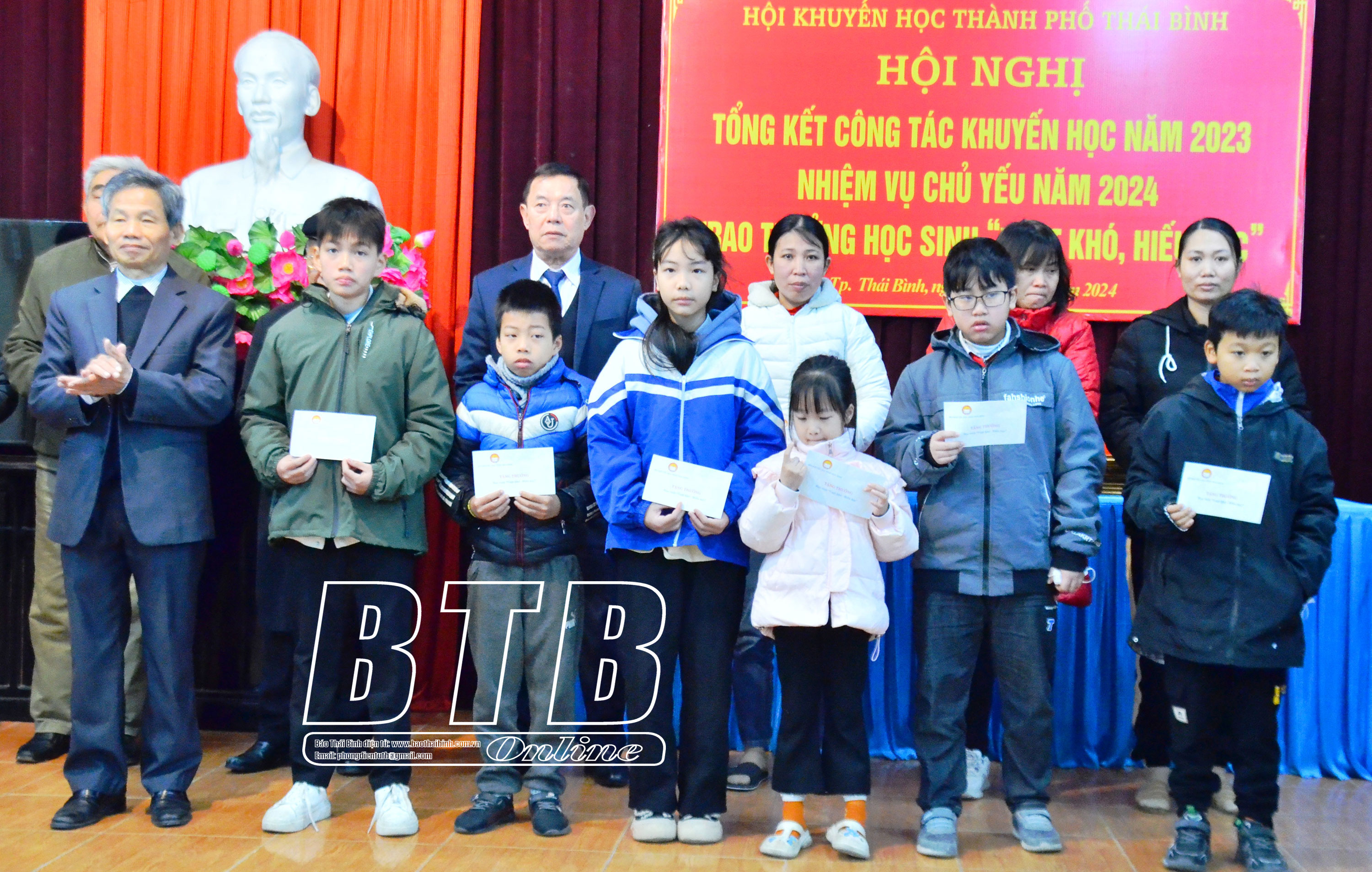 Tại hội nghị, 39 suất quà tết đã được trao tặng học sinh có hoàn cảnh khó khăn hiếu học trên địa bàn thành phố. Đây là hoạt động thường niên của Hội Khuyến học thành phố mỗi dịp tết đến xuân về, mang ý nghĩa thiết thực, giúp các em học sinh có hoàn cảnh khó khăn được đón tết cổ truyền vui tươi, đầm ấm. Đồng thời động viên, khích lệ, tạo động lực để các em cố gắng vươn lên trong cuộc sống và học tập.