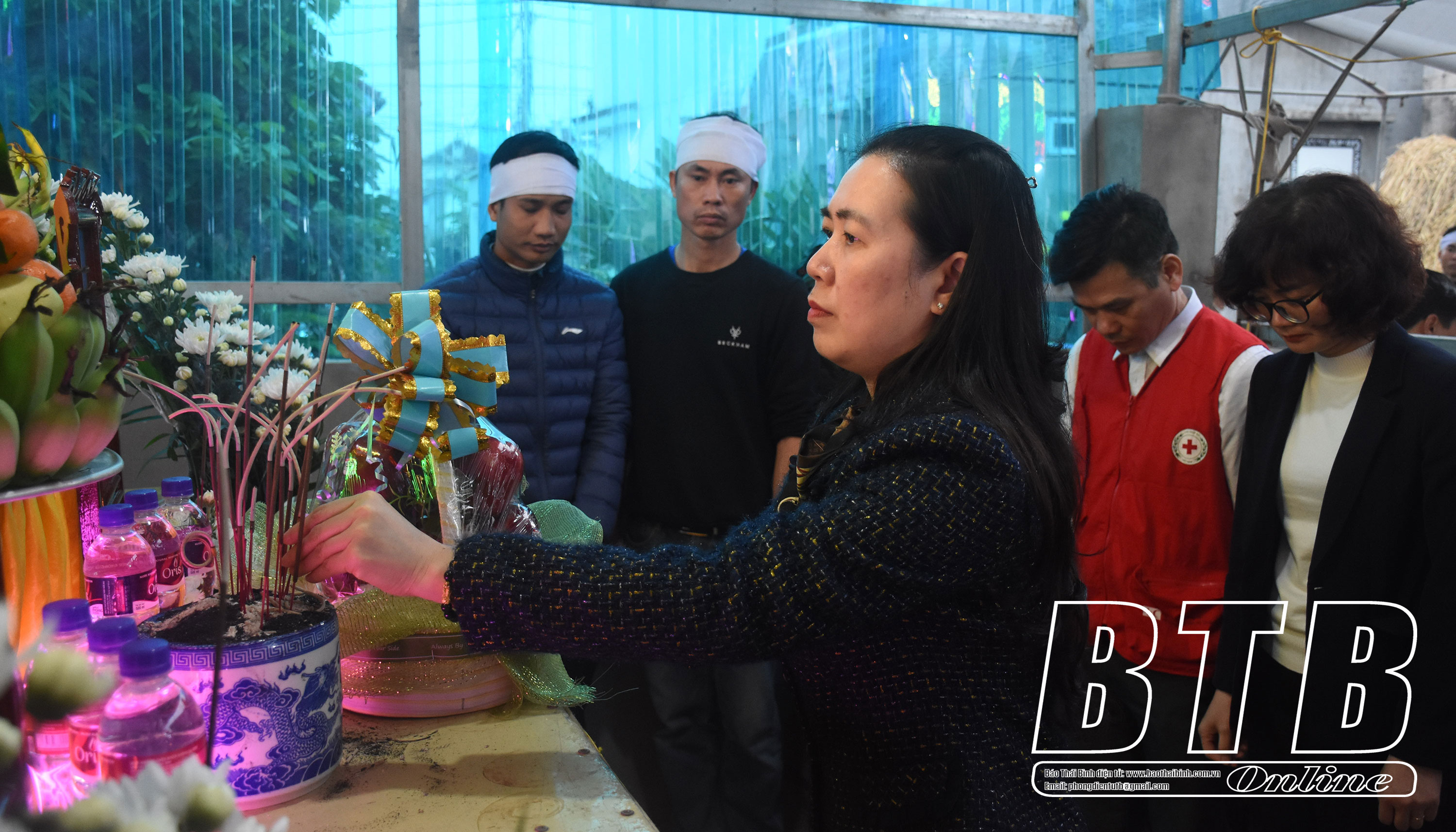 Đồng chí Trần Thị Bích Hằng, Tỉnh ủy viên, Phó Chủ tịch UBND tỉnh thắp hương chia buồn cùng gia đình nạn nhân.