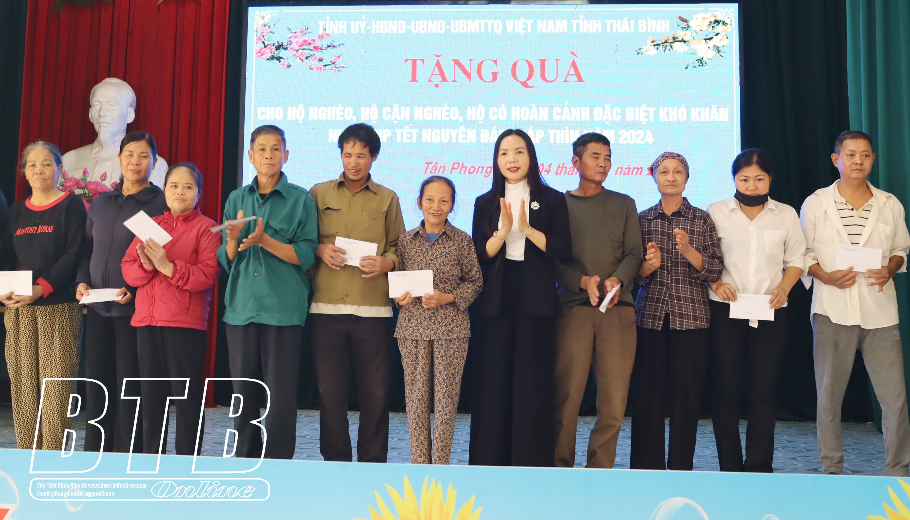 Chiều ngày 4/2, đồng chí Ngô Thị Kim Hoàn, Ủy viên Ban Thường vụ, Chủ nhiệm Ủy ban Kiểm tra Tỉnh ủy đã đến chúc tết, tặng quà hộ nghèo, hộ cận nghèo, hộ có hoàn cảnh đặc biệt khó khăn nhân dịp tết Nguyên đán Giáp thìn năm 2024 tại xã Tân Phong (Vũ Thư).