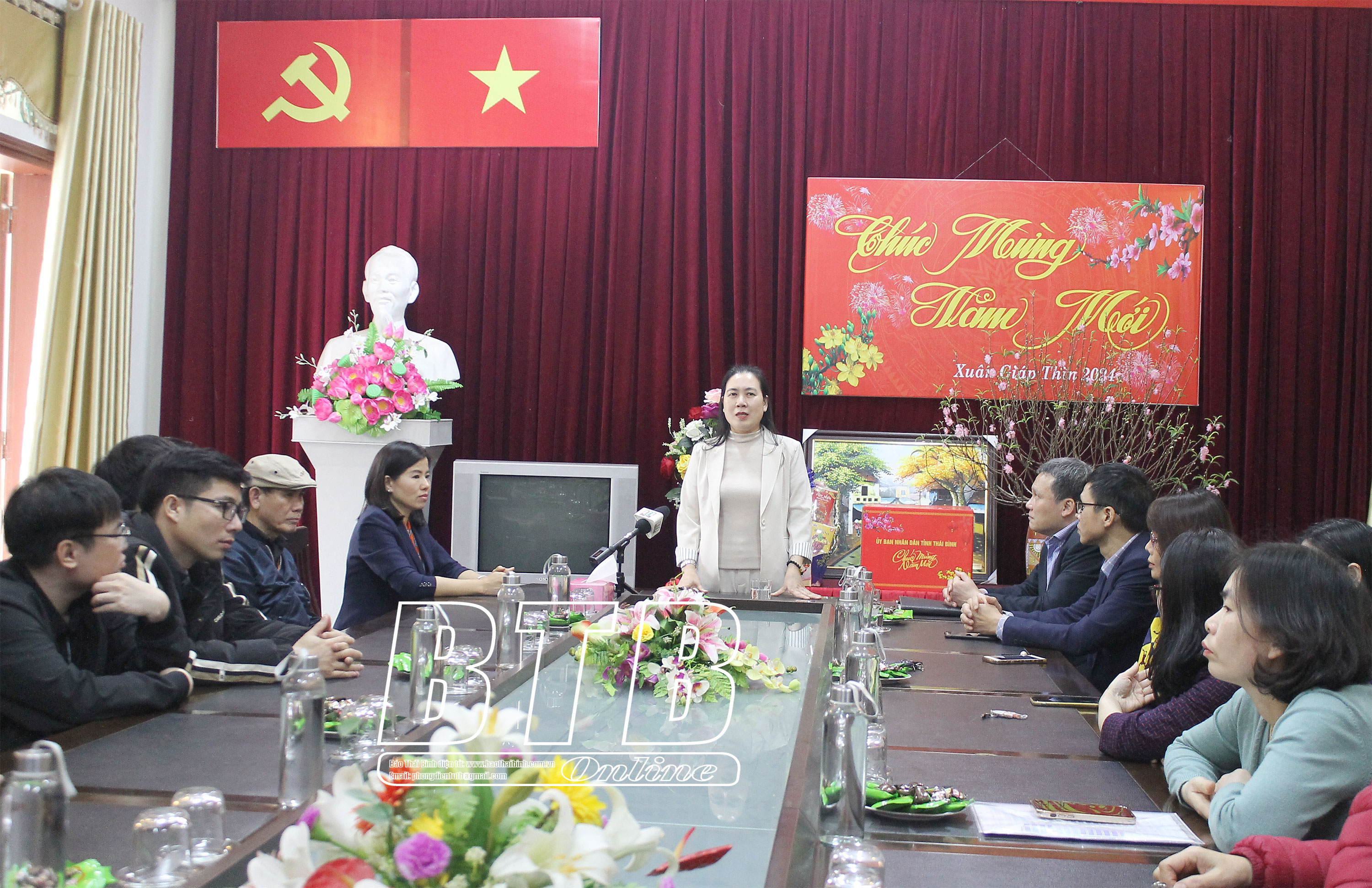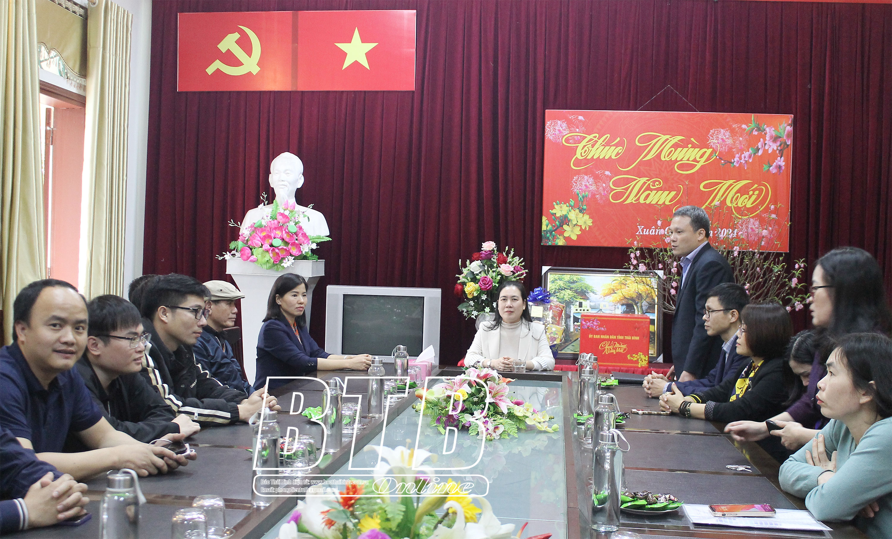 Nhân dịp tết Nguyên đán Giáp Thìn 2024, đồng chí Phó Chủ tịch UBND tỉnh chúc cán bộ, phóng viên, biên tập viên và người lao động của Báo Thái Bình năm mới an khang, thịnh vượng, phát huy những kết quả đã đạt được, tiếp tục nỗ lực phấn đấu, hoàn thành xuất sắc các mục tiêu trong năm 2024; trước mắt, tập trung làm tốt công tác tuyên truyền công tác bảo đảm an ninh trật tự, an sinh xã hội, bảo đảm môi trường an toàn, lành mạnh để nhân dân đón tết vui xuân.