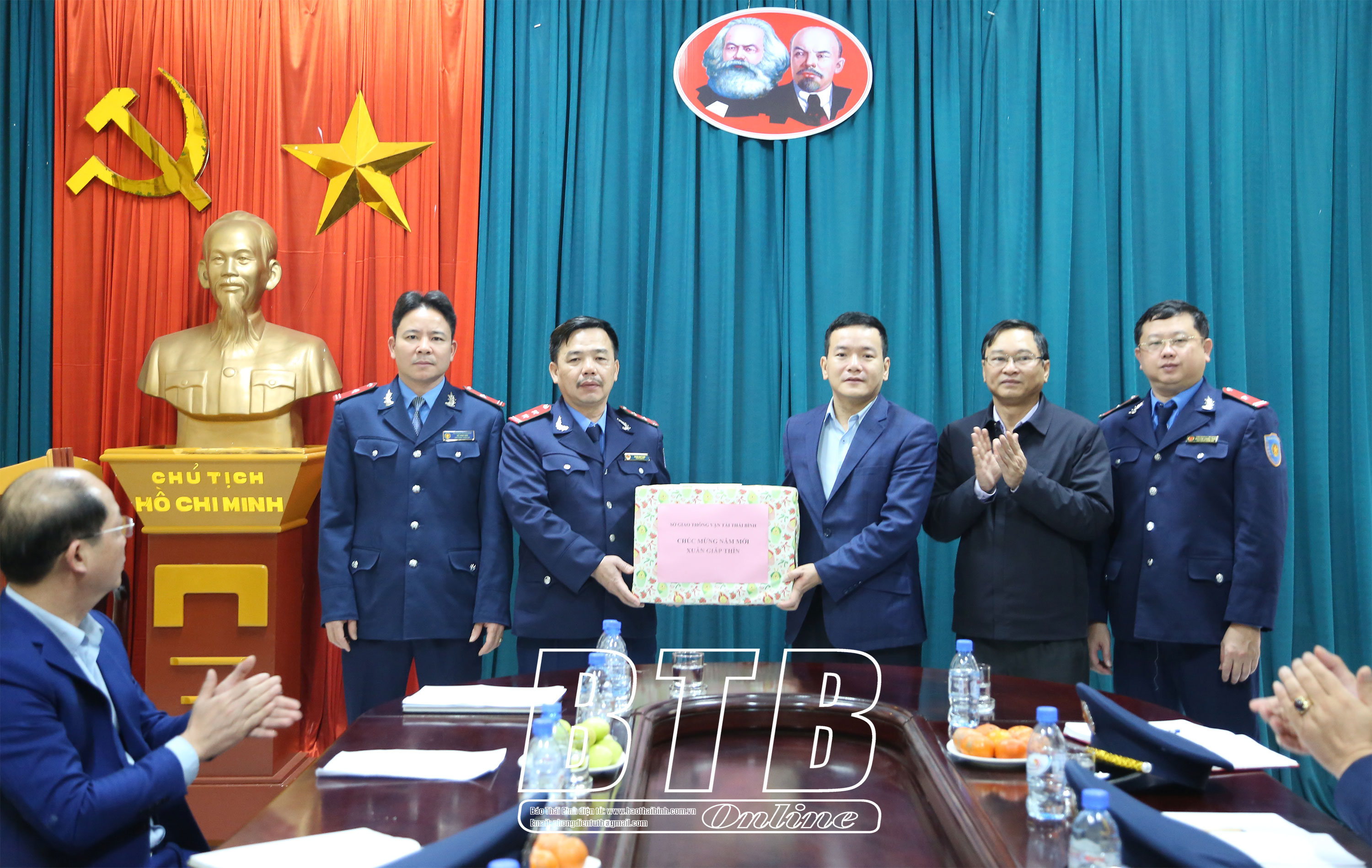 Lãnh đạo Sở Giao thông Vận tải, Ban ATGT tỉnh tặng quà, chúc tết lực lượng làm nhiệm vụ dịp tết Nguyên đán.