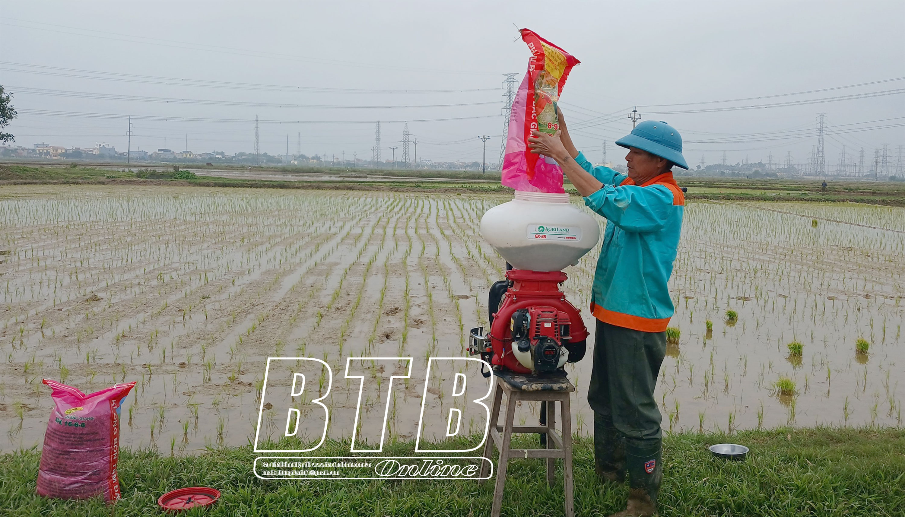 Nông dân huyện Đông Hưng ra đồng chăm sóc lúa cấy trước tết.
