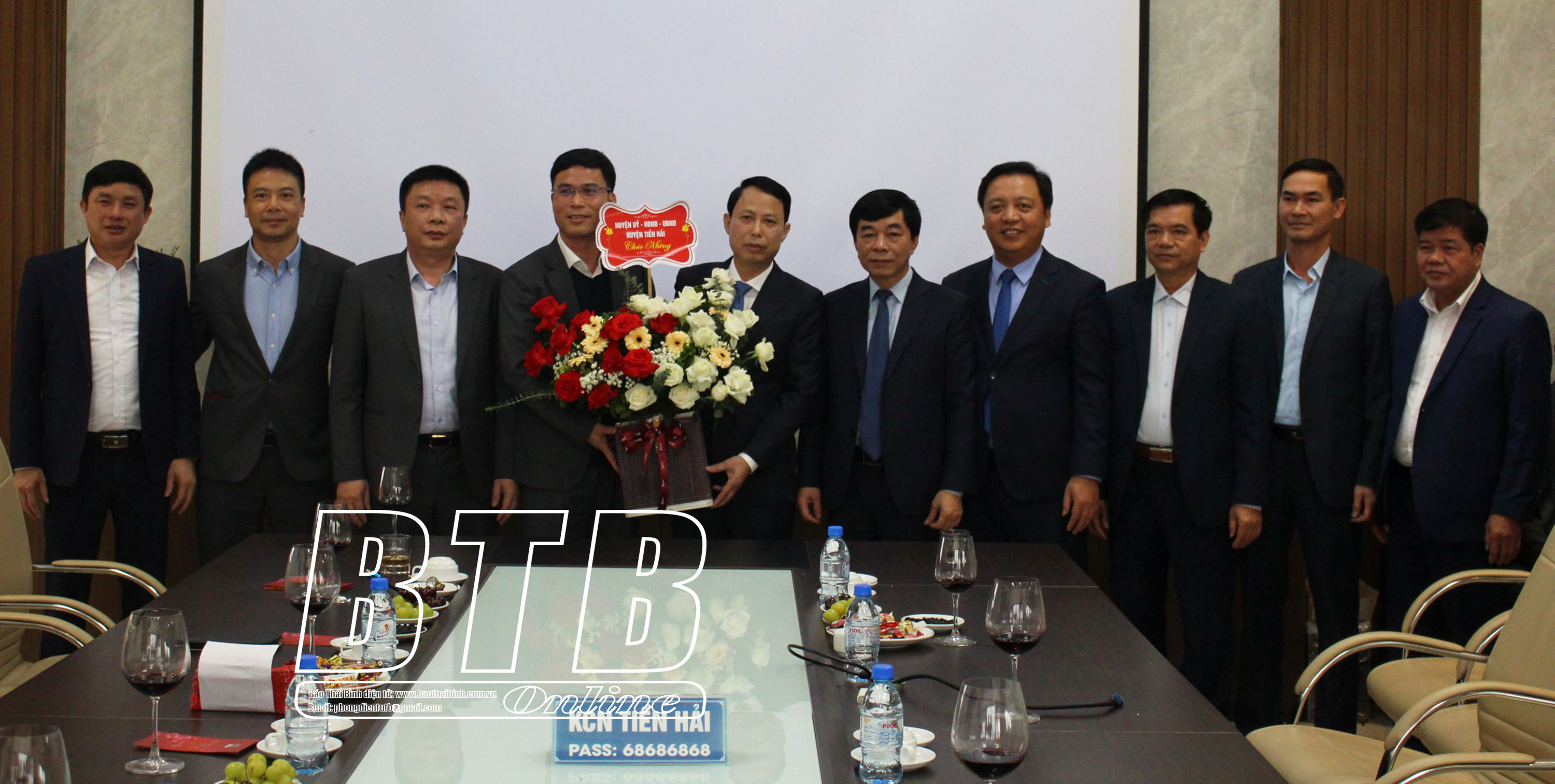 Lãnh đạo huyện Tiền Hải tặng hoa chúc tết Tổng Công ty Viglacera-CTCP.Lãnh đạo huyện Tiền Hải thăm Nhà máy sợi An Ninh.