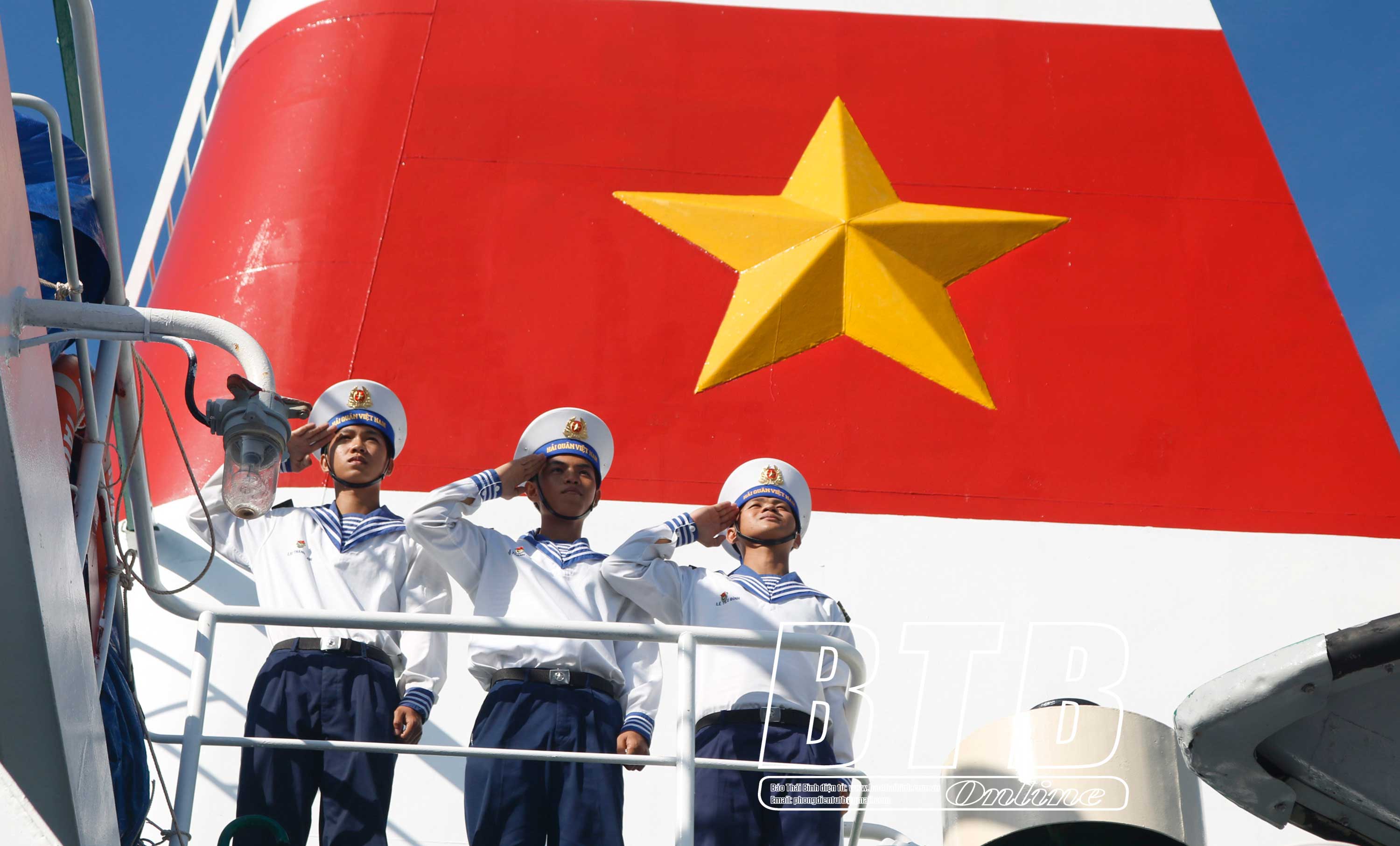Giây phút thiêng liêng của người lính khi còi tàu vang lên.