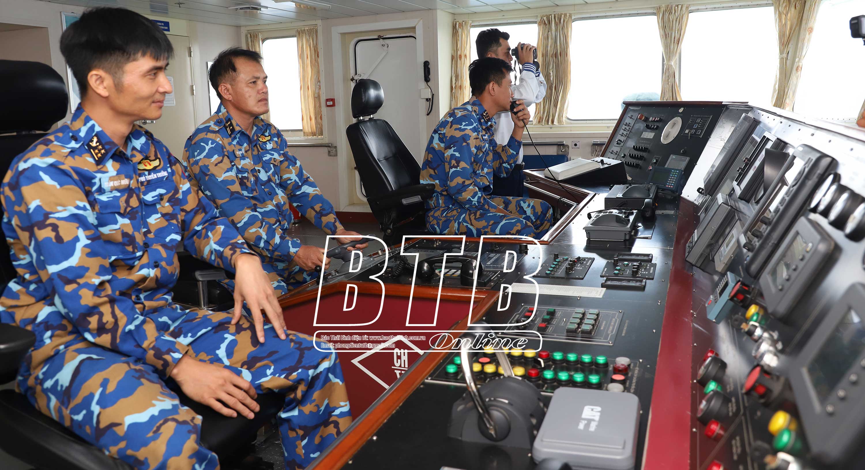 Những hồi còi dài đưa chúng tôi rời đất liền, chỉ còn tiếng sóng vỗ vào mạn tàu và những chú chim hải âu, cá heo đồng hành cùng chúng tôi trên chặng đường phía trước. Nhiều người tập trung ở boong hay hai mạn tàu để ngắm và chụp ảnh hoàng hôn trên biển, hít thở những làn gió biển... Đêm đầu tiên trên tàu, chúng tôi cảm nhận được thế nào là say sóng. Gió cấp 5, cấp 6, con tàu lắc lư theo từng đợt sóng; ba lô, đồ đạc trong phòng tự xê dịch, người nằm trên tàu đu đưa qua phải rồi lại qua trái. Cơn say sóng khiến nhiều người phải bỏ ăn, thế nhưng tất cả vẫn háo hức ngóng chờ giây phút được đến với Trường Sa thân yêu. Biết chúng tôi say sóng, lãnh đạo tàu đã chỉ đạo tổ bếp nấu thêm cháo để anh chị em trong đoàn dễ ăn. Các bác sĩ trên tàu cũng sẵn sàng đến khám, truyền nước cho những người bị mệt do say sóng. Thiếu tá Phan Văn Linh, quê xã Minh Tân (Kiến Xương) hiện đang phụ trách quân y của tàu 561 chia sẻ: Tôi công tác trên tàu từ khi tàu mới được đưa vào sử dụng. Chính vì thế, tôi hiểu rất rõ tình trạng thường gặp đối với những người lần đầu đi tàu. Trước mỗi hải trình, tôi thường phối hợp với các chiến sĩ hậu cần lựa chọn thuốc men, hoa quả, trái cây như táo, ngô, khoai, củ đậu, xây dựng thực đơn hợp lý... để khi có người say sóng có thể ăn để bù nước cũng như bảo đảm sức khỏe trong suốt hành trình.
