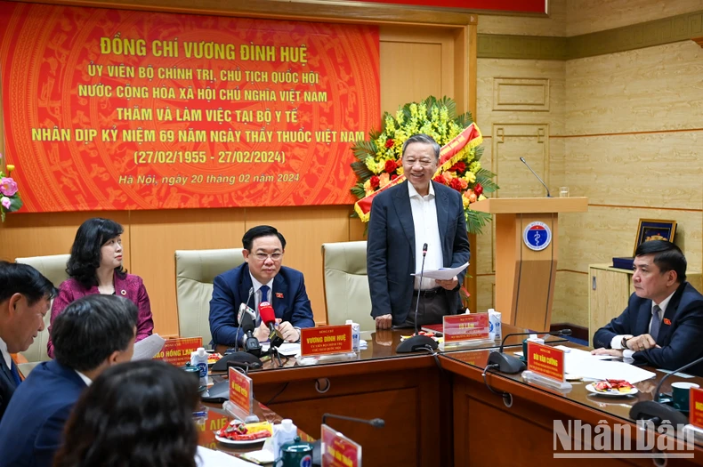 Sau khi nghe ý kiến phát biểu của Đại tướng Tô Lâm, Ủy viên Bộ Chính trị, Bộ trưởng Công an; Bộ trưởng Y tế báo cáo và ý kiến các bộ, ngành, lãnh đạo một số ủy ban của Quốc hội, Chủ tịch Quốc hội đánh giá cao những thành tích toàn diện của ngành y tế.