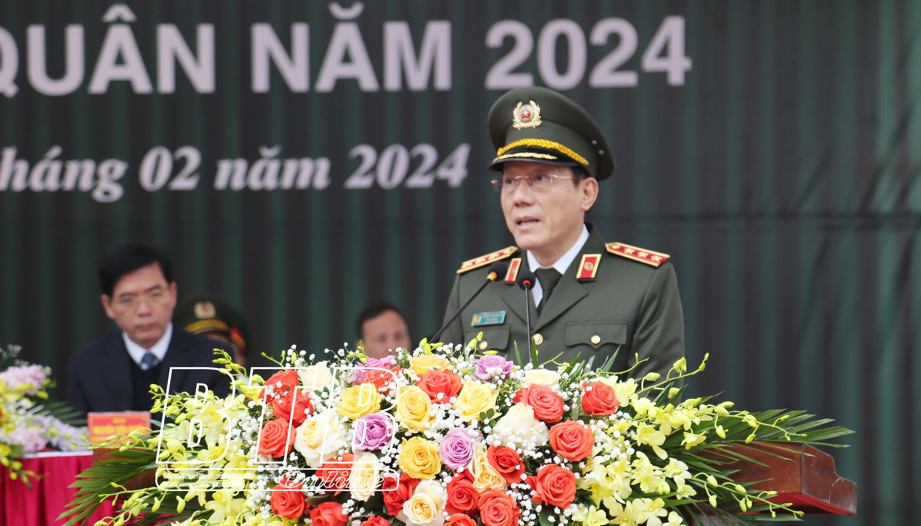 Đồng chí Thứ trưởng Bộ Công an ghi nhận và đánh giá cao sự quan tâm của Tỉnh ủy, HĐND, UBND, Hội đồng Nghĩa vụ Quân sự tỉnh và các đơn vị liên quan đã làm tốt công tác tuyển chọn, động viên tân binh yên tâm lên đường bảo vệ Tổ quốc. Đồng chí mong muốn các tân binh phát huy truyền thống quê hương anh  hùng, truyền thống vẻ vang của thế hệ cha anh đi trước nỗ lực phấn đấu vượt mọi khó khăn, thử thách, không ngừng tu dưỡng học tập, rèn luyện thực sự trở thành anh bộ đội Cụ Hồ, chiến sĩ công an nhân dân Việt Nam, hết lòng, hết sức phụng sự Tổ quốc, phục vụ nhân dân, hoàn thành xuất sắc mọi nhiệm vụ được giao. Các tổ chức đoàn thể từ tỉnh đến huyện thực hiện tốt chính sách hậu phương quân đội, quan tâm chăm lo giúp đỡ các gia đình tân binh để các tân binh yên tâm thực hiện nhiệm vụ.