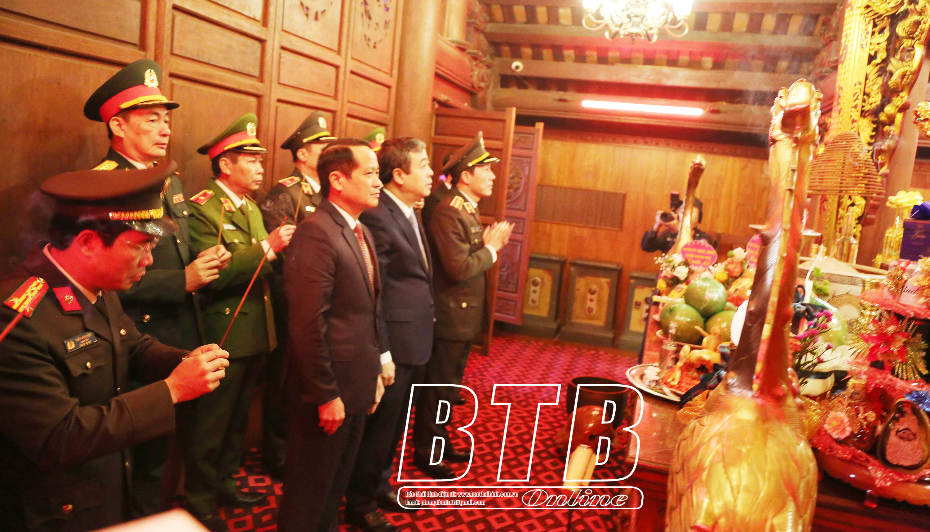 Trước đó, Thượng tướng Lương Tam Quang, Ủy viên Ban Chấp hành Trung ương Đảng, Thứ trưởng Bộ Công an; đồng chí Ngô Đông Hải, Ủy viên Ban Chấp hành Trung ương Đảng, Bí thư Tỉnh ủy cùng các đại biểu dâng hương tưởng niệm Quốc Công Tiết Chế Hưng Đạo Đại Vương Trần Quốc Tuấn.