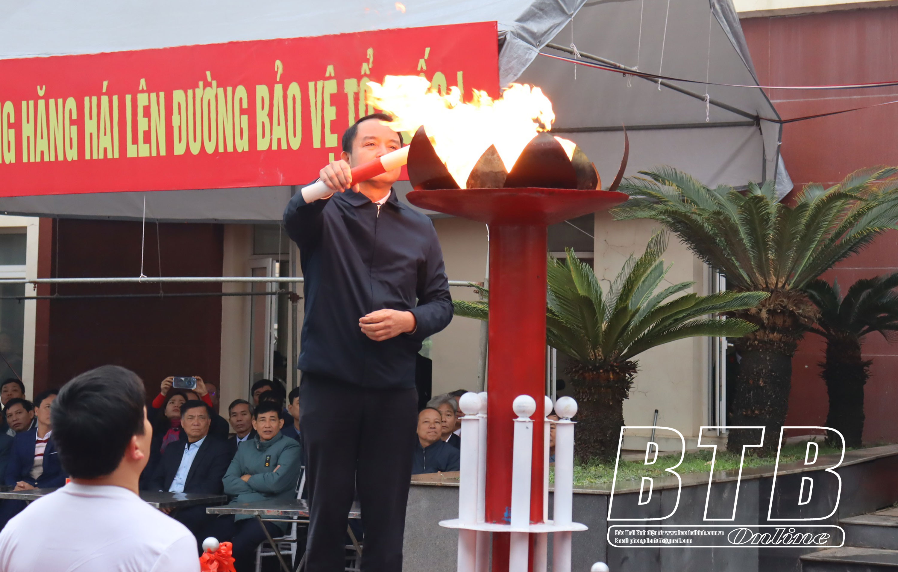 Lãnh đạo huyện Kiến Xương thực hiện nghi thức thắp lửa truyền thống.
