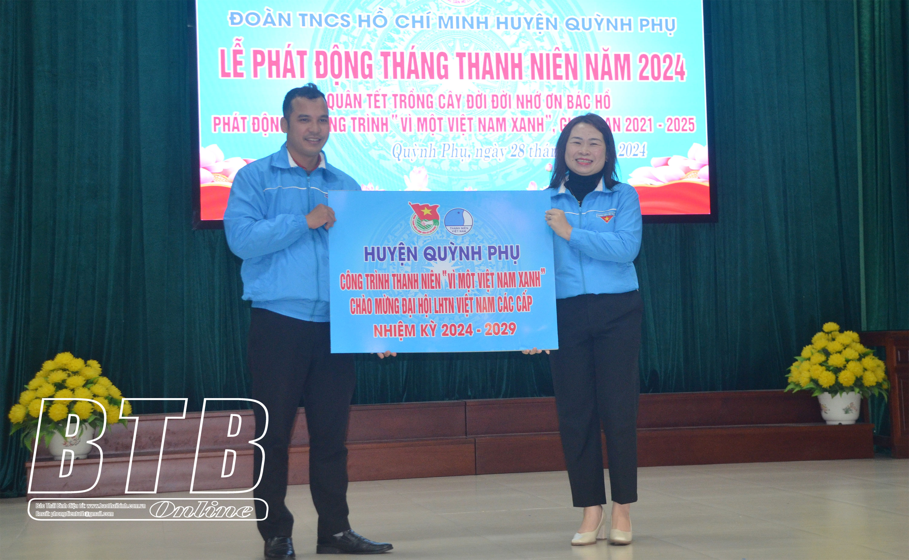 Tại lễ phát động, Tỉnh đoàn trao tặng công trình thanh niên “camera an ninh” cho Đoàn Thanh niên huyện Quỳnh Phụ, Huyện đoàn Quỳnh Phụ trao tặng công trình thanh niên “Vì một Việt Nam xanh” cho Đoàn Thanh niên xã An Đồng; trao tặng quà cho cựu thanh niên xung phong có hoàn cảnh khó khăn xã An Đồng.