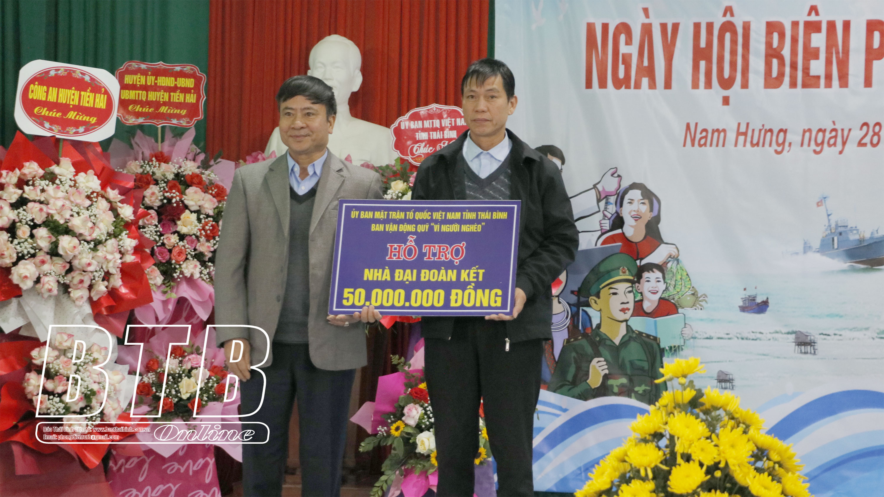 Nhân dịp này, Ủy ban MTTQ tỉnh, Bộ Chỉ huy BĐBP tỉnh, Đồn Biên phòng Cửa Lân và các đơn vị, địa phương trên địa bàn huyện Tiền Hải đã trao 80 suất quà, 2 nhà đại đoàn kết, 2 bò sinh kế cho các hộ nghèo, hộ cận nghèo và tuyên dương, khen thưởng các tập thể, cá nhân đạt thành tích trong thực hiện phong trào thi đua “Toàn dân tham gia bảo vệ chủ quyền lãnh thổ, an ninh biên giới quốc gia trong tình hình mới” và các hoạt động công tác biên phòng khác.