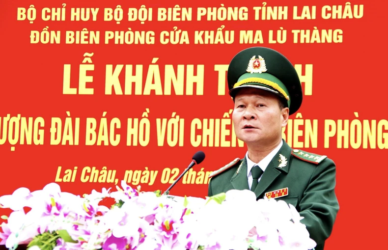 Đại tá Triệu Quốc Nguậy, Chỉ huy trưởng Bộ đội Biên phòng tỉnh Lai Châu phát biểu tại buổi lễ.