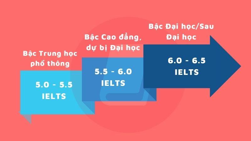 • Với các chương trình Dự bị Đại học hoặc Chuyển tiếp Đại học: Điểm IELTS thấp nhất là 5.5.