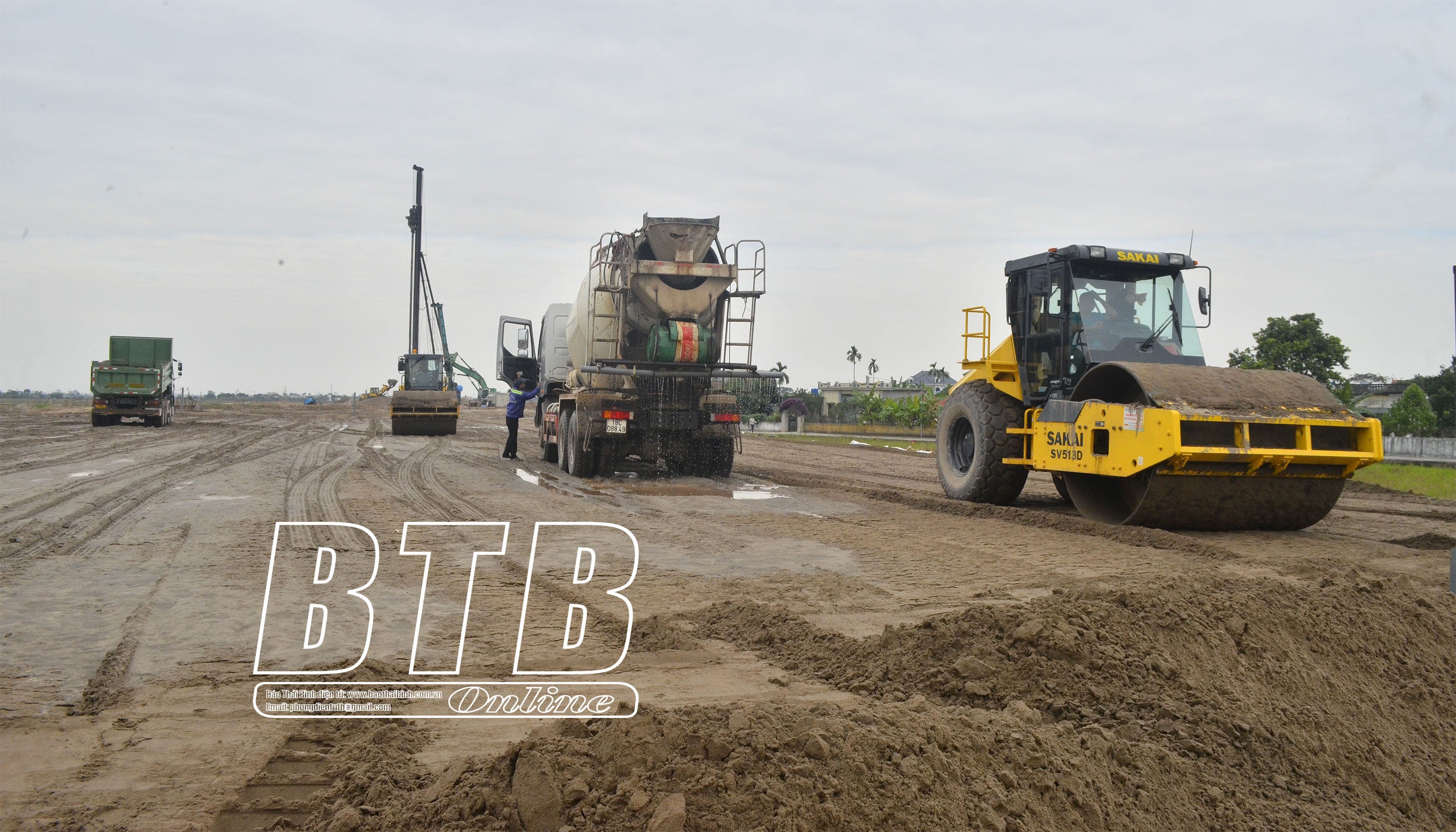 Thi công tuyến đường trục phía Nam Khu kinh tế Thái Bình đoạn qua huyện Kiến Xương.