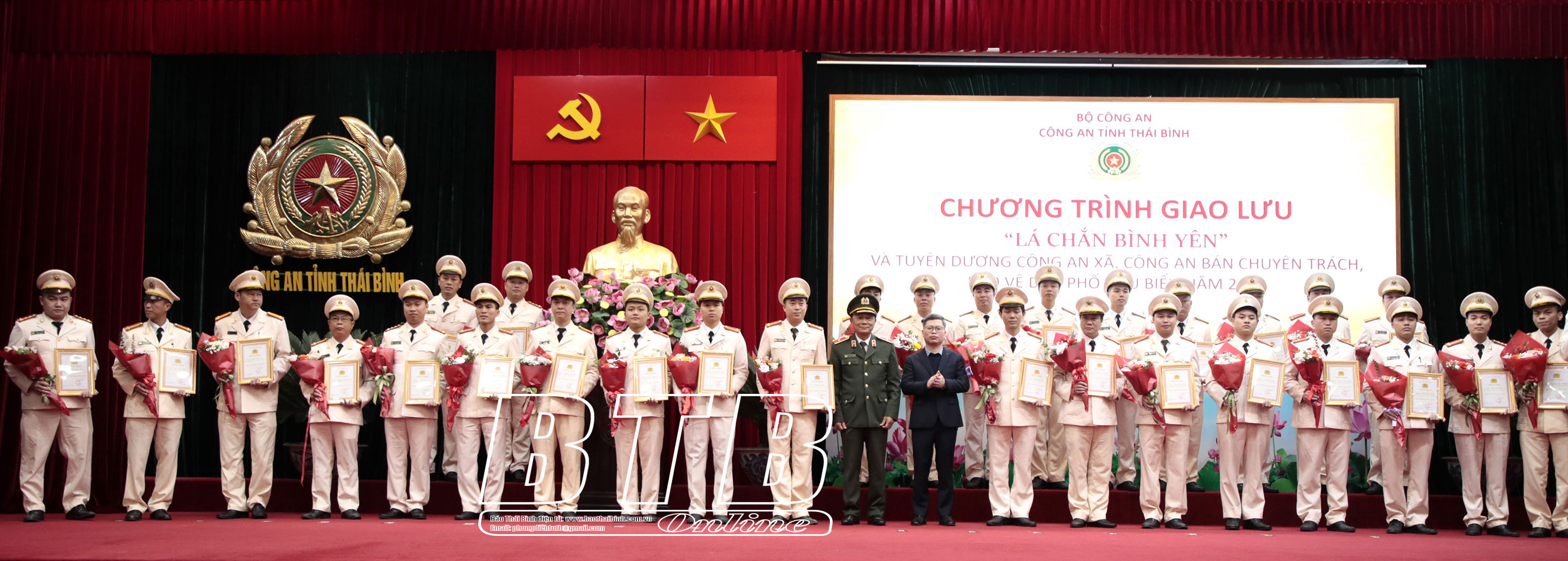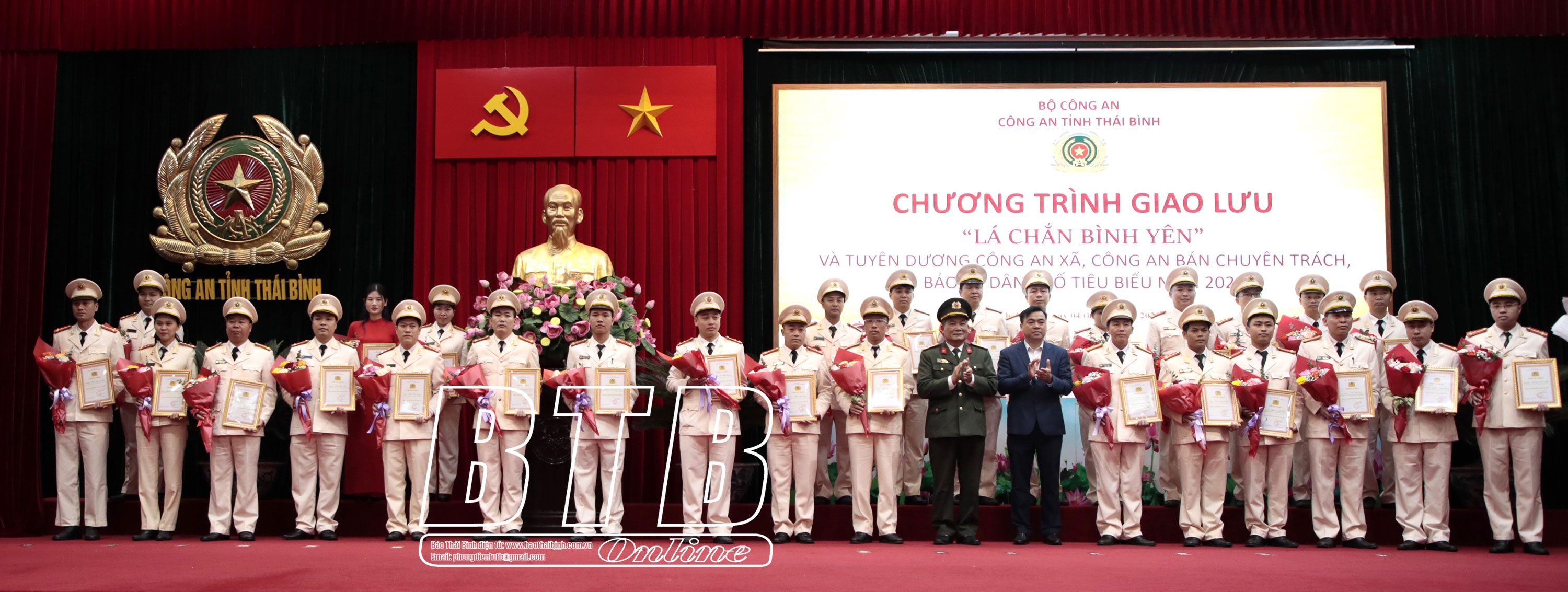 Các đồng chí lãnh đạo Bộ Công an, Công an tỉnh tuyên dương, khen thưởng lực lượng công an bán chuyên trách, bảo vệ dân phố tiêu biểu năm 2023.