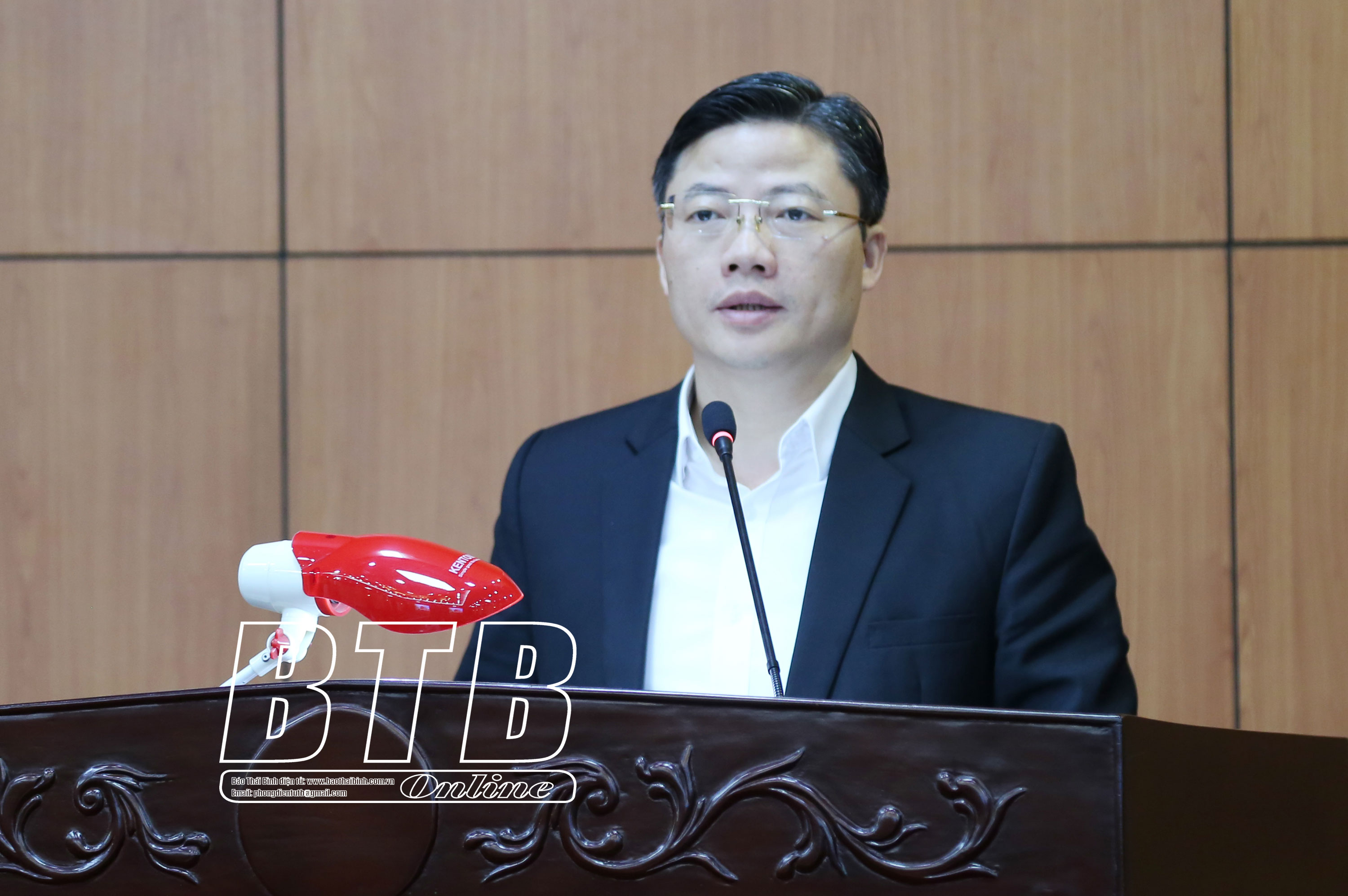 Đồng chí Hoàng Minh Sơn, Tỉnh ủy viên, Tổng Biên tập Báo Thái Bình, Chủ tịch Hội Nhà báo tỉnh phát biểu tại lễ phát động.
