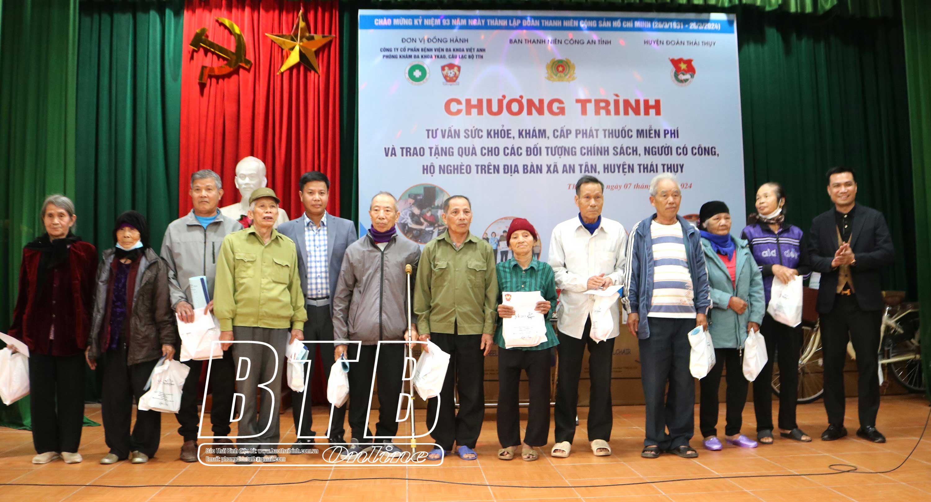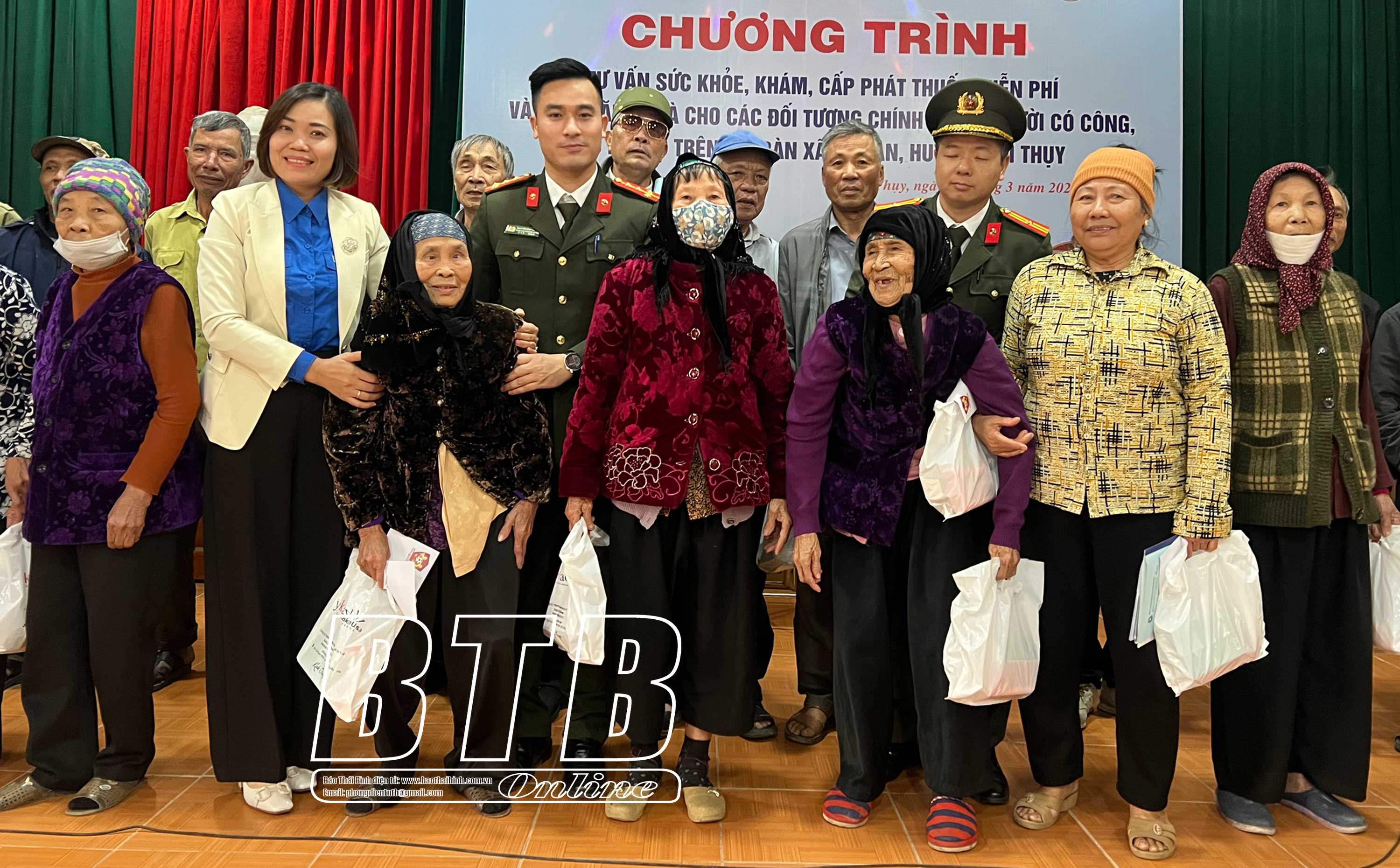 Chiều ngày 7/3, Ban Thanh niên Công an tỉnh phối hợp với các nhà tài trợ và Huyện đoàn Thái Thụy tổ chức chương trình khám sức khỏe và tặng quà người có công, đối tượng chính sách, hộ nghèo xã An Tân. Dự chương trình có Đại tá Trần Văn Phúc, Ủy viên Ban Thường vụ Tỉnh ủy, Giám đốc Công an tỉnh.