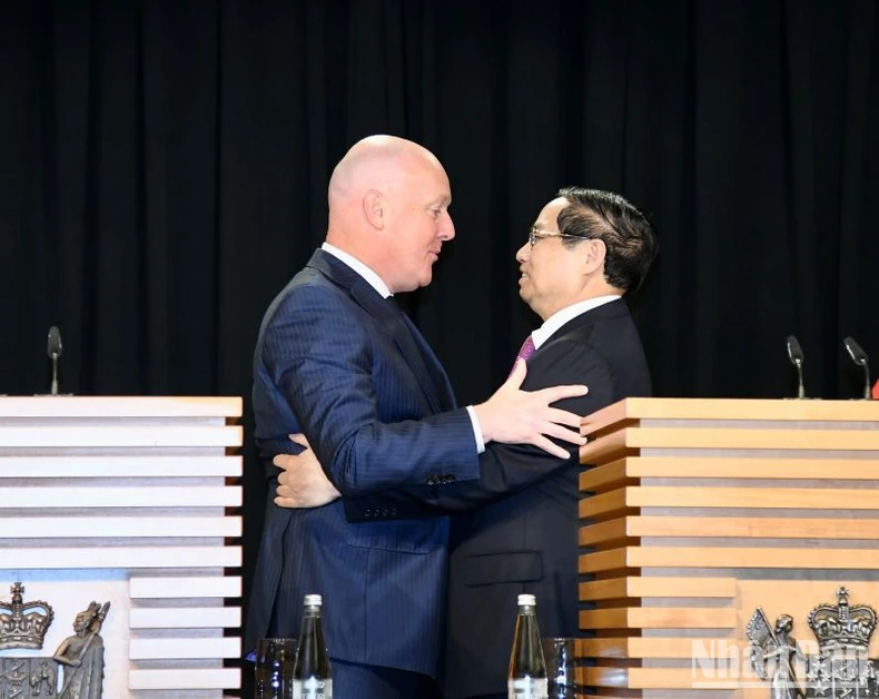 Về phần mình, Thủ tướng New Zealand Christopher Luxon bày tỏ Chính phủ và nhân dân New Zealand rất vinh dự được đón tiếp Thủ tướng Phạm Minh Chính và Đoàn đại biểu cấp cao thăm chính thức, vui mừng các cùng đối tác Việt Nam đưa ra các cam kết về chính trị, thương mại, qua đó cùng xây dựng sự ổn định, hòa bình trong khu vực, ký kết những hiệp định song phương để đem lại lợi ích cho người dân hai nước. Ông nêu rõ, Thủ tướng Phạm Minh Chính đã tổng kết cụ thể nội dung thảo luận song phương giữa hai Thủ tướng; cho rằng, hai nước hợp tác trong các lĩnh vực sẽ bảo đảm an toàn, an ninh, đặc biệt là giao thương giữa các quốc gia trong khu vực. Việt Nam và các quốc gia châu Á là các đối tác cực kỳ quan trọng đối với New Zealand, Việt Nam là một trong các quốc gia tạo đà phát triển rất mạnh mẽ. Khi hợp tác với Việt Nam, New Zealand sẽ tăng được cơ hội giao thương cũng như cam kết về chính trị, ổn định trật tự.