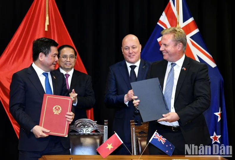 Tăng cường hợp tác kinh tế-thương mại-đầu tư; phấn đấu đưa kim ngạch thương mại hai chiều đạt mục tiêu 2 tỷ USD trong năm 2024 và sớm tăng gấp đôi đầu tư hai chiều thông qua các biện pháp phù hợp, trong đó có mở cửa thị trường và giảm rào cản thương mại hai chiều. Việt Nam hoan nghênh đầu tư từ New Zealand trong các lĩnh vực, nhất là giáo dục-đào tạo, nông nghiệp chất lượng cao, năng lượng tái tạo.