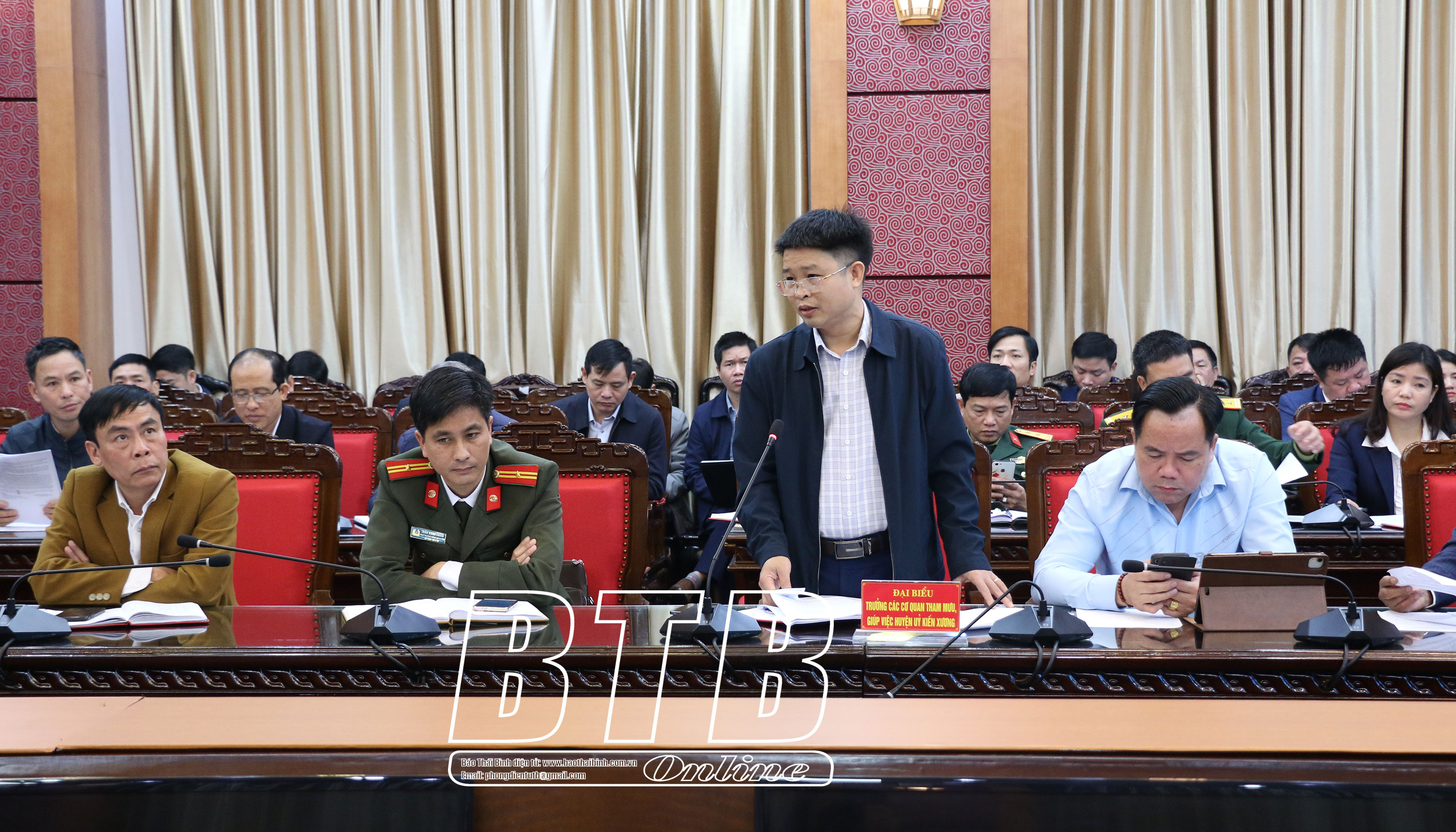 Đại biểu Huyện ủy Kiến Xương phát biểu tham gia ý kiến tại hội nghị.
