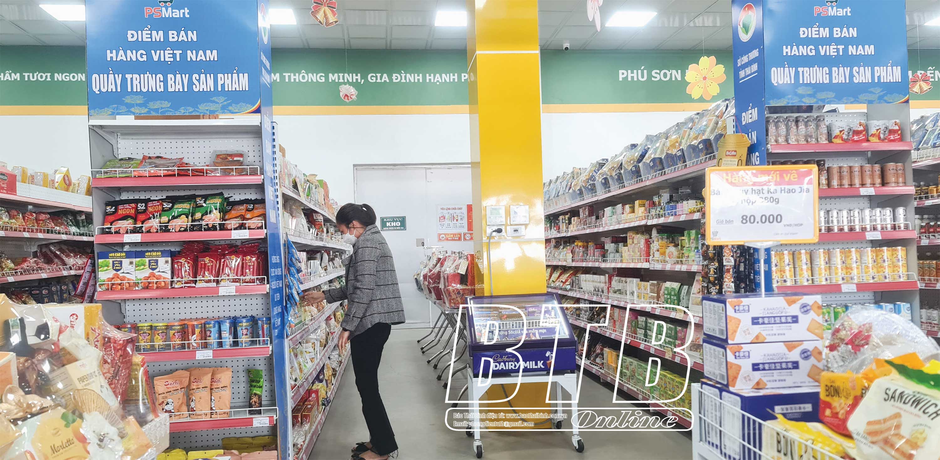 Sở Công Thương xây dựng 7 điểm bán hàng Việt Nam tại các huyện góp phần bảo vệ quyền lợi người tiêu dùng. Trong ảnh: Điểm bán hàng Việt Nam tại cơ sở kinh doanh Phú Sơn, huyện Hưng Hà.