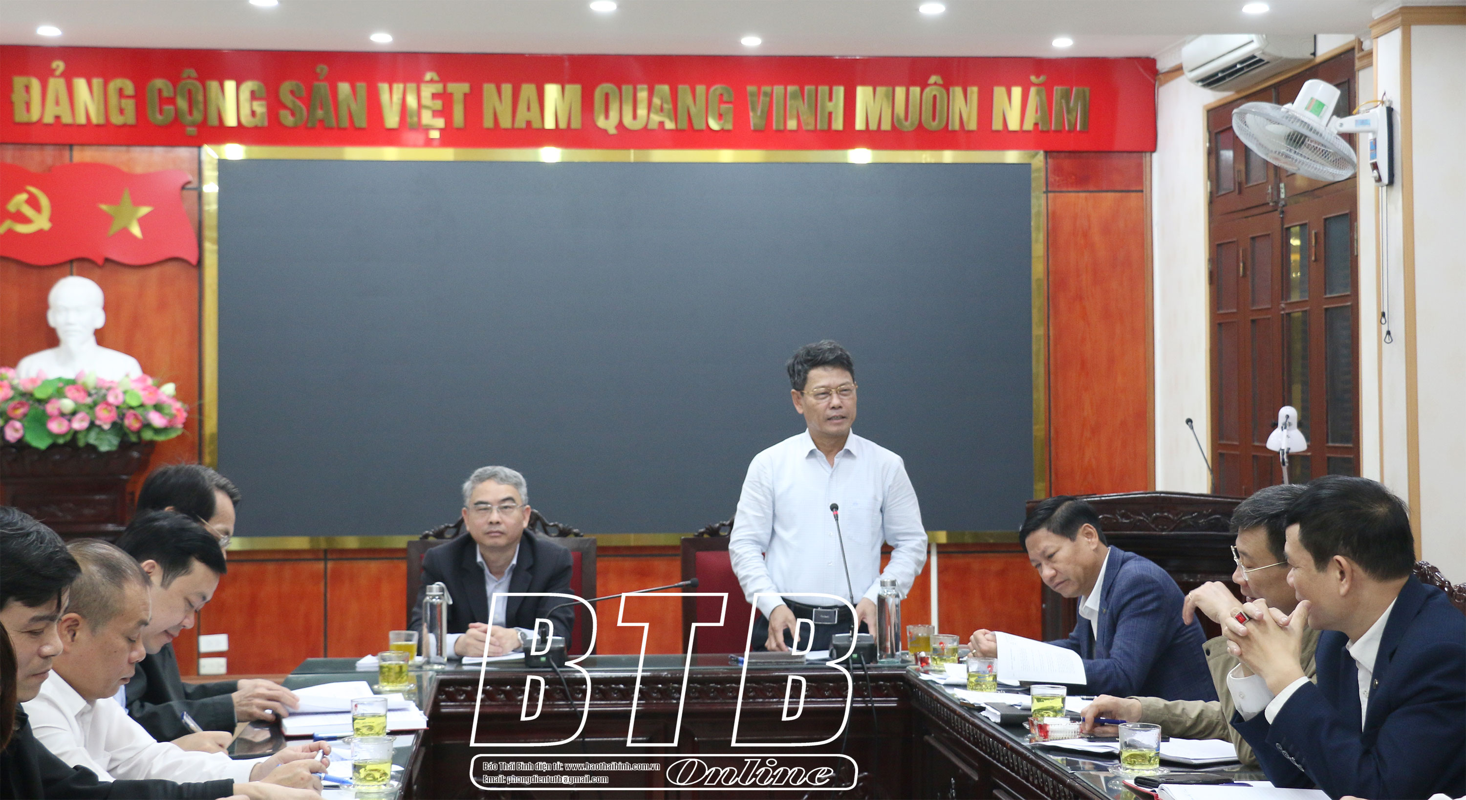 Sáng ngày 18/3, tại Thành ủy Thái Bình, đoàn giám sát số 1050 của Ban Thường vụ Tỉnh ủy do đồng chí Phạm Đồng Thụy, Ủy viên Ban Thường vụ, Trưởng ban Tuyên giáo Tỉnh ủy làm trưởng đoàn tổ chức triển khai cuộc giám sát việc lãnh đạo, chỉ đạo, thực hiện Kết luận số 76-KL/TW ngày 4/6/2020 của Bộ Chính trị (khóa XII) về tiếp tục thực hiện Nghị quyết số 33-NQ/TW của Ban Chấp hành Trung ương (khóa XI) về xây dựng và phát triển văn hóa, con người Việt Nam đáp ứng yêu cầu phát triển bền vững đất nước và Nghị quyết số 04-NQ/TU ngày 30/1/2019 của Ban Chấp hành Đảng bộ tỉnh (khóa XIX) về tăng cường giáo dục, phát huy truyền thống văn hóa, văn hiến, yêu nước, cách mạng của quê hương Thái Bình cho cán bộ, đảng viên và các tầng lớp nhân dân đối với Ban Thường vụ Thành ủy Thái Bình và đồng chí Bí thư Thành ủy. Dự hội nghị có đồng chí Hoàng Văn Thành, Ủy viên Ban Thường vụ Tỉnh ủy, Bí thư Thành ủy, Chủ tịch HĐND thành phố.