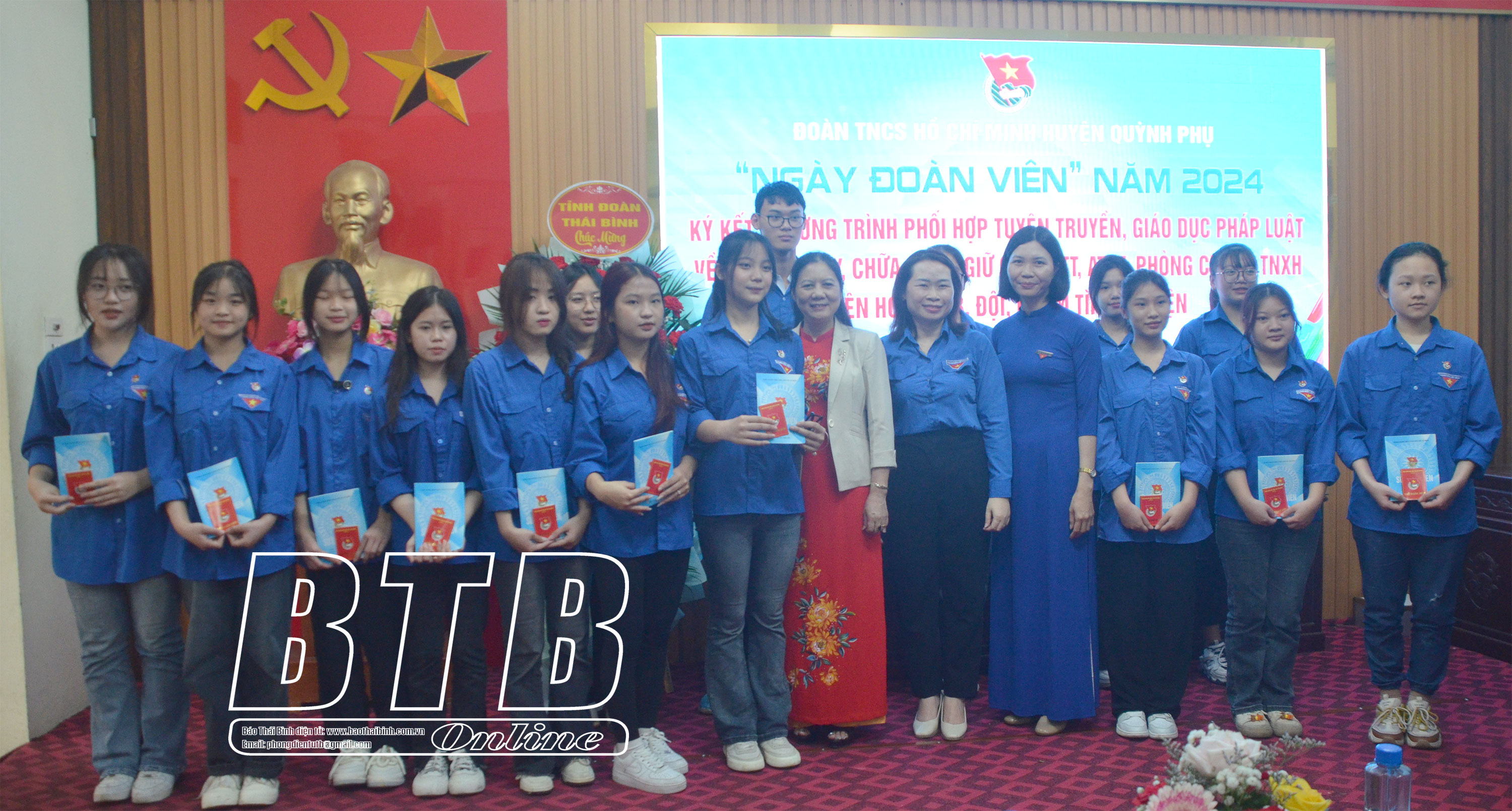 Huyện đoàn Quỳnh Phụ tổ chức trao thẻ đoàn, sổ đoàn cho đoàn viên mới kết nạp.
