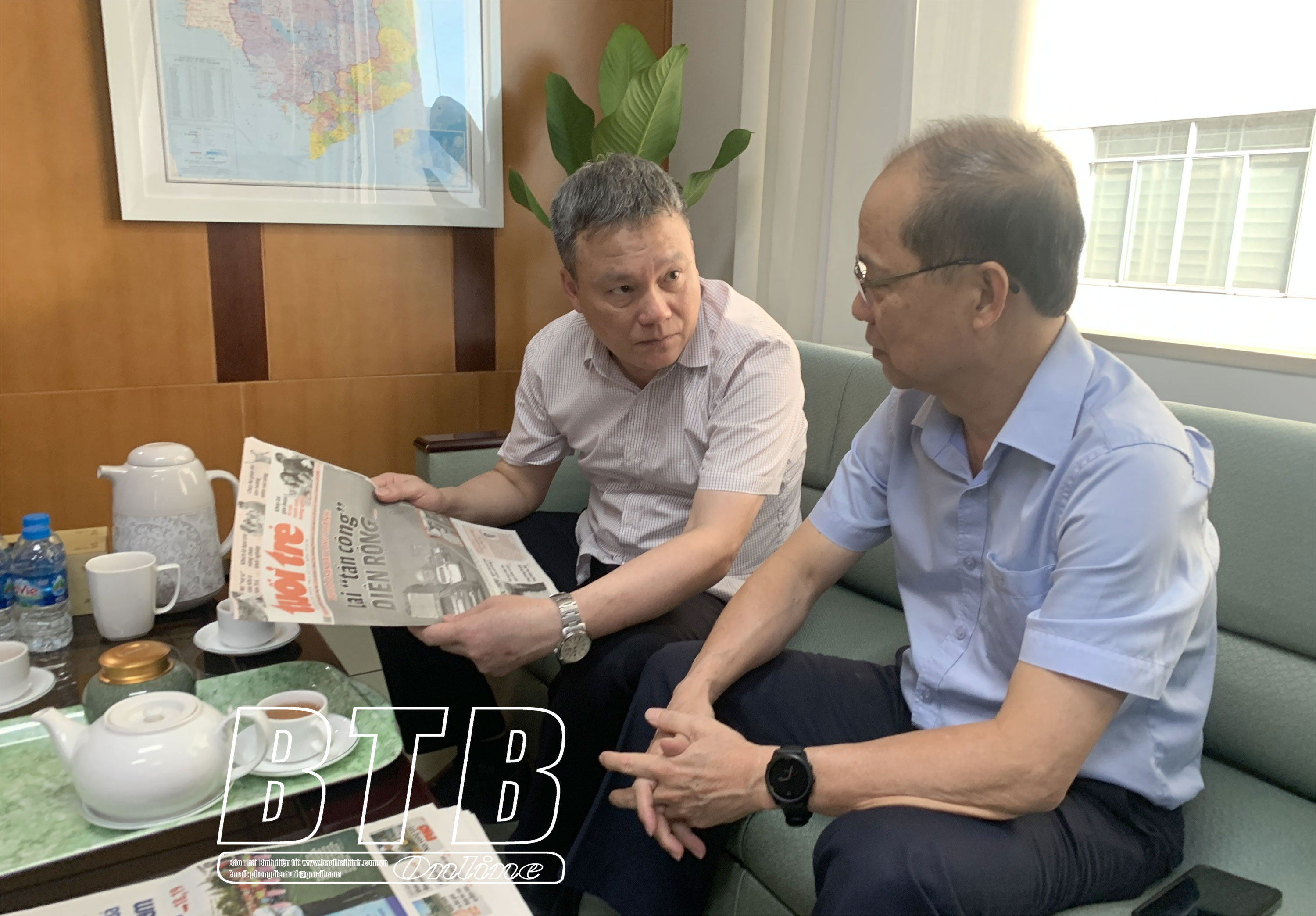 Lãnh đạo Báo Tuổi trẻ và Báo Thái Bình trao đổi nghiệp vụ làm báo.